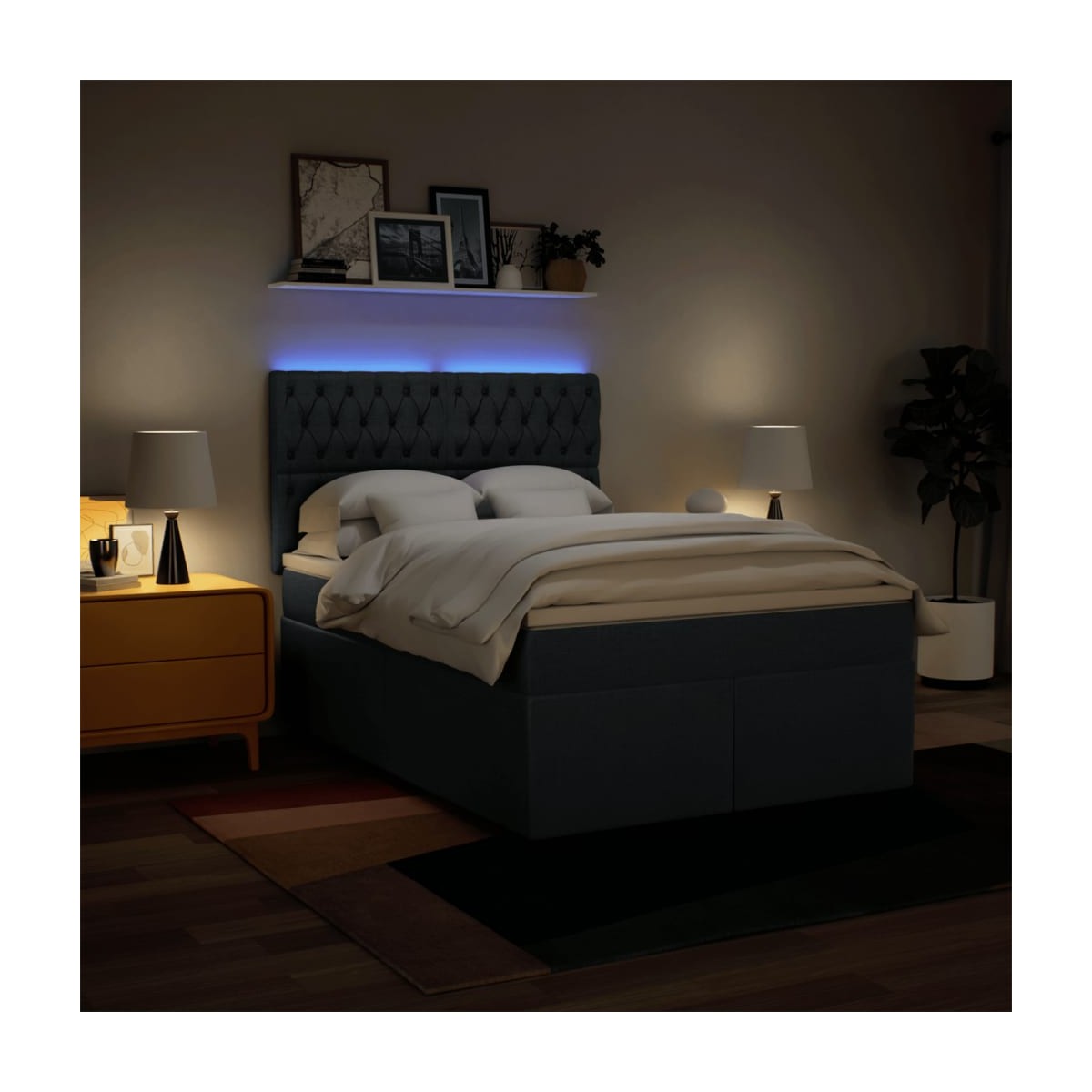 Utiliza esta cama de muelles para disfrutar de un sueño reparador. Te ofrece la máxima relajación y un sueño placentero.Material suave y duradero: El tejido de poliéster combina suavidad, transpirabilidad y durabilidad, lo que garantiza que experimentes la máxima comodidad.Colchón de muelles ensacados: Este colchón de muelles ensacados cuenta con muelles ensacados individuales que funcionan de forma independiente para proporcionar un apoyo personalizado reaccionando únicamente a la presión de cada zona. Este diseño evita que se enrolle y reduce la transferencia de movimiento en comparación con los colchones tradicionales de bobina abierta. Cada muelle ensacado sostiene el cuerpo individualmente.Luces LED para un ambiente agradable: Esta cama cuenta con luces LED que se pueden ajustar fácilmente para crear un espectáculo de luces personalizado. Puedes personalizar los modos, los colores y el brillo para mejorar el ambiente de tu espacio interior.Cabecero regulable en altura: El cabecero es ajustable en altura para adaptarse a tus preferencias.Cubrecolchón cómodo: Este cubrecolchón mejora el soporte y la comodidad con su superficie suave y transpirable al tiempo que prolonga la vida útil de su colchón. Su funda extraíble permite un fácil lavado, lo que facilita el mantenimiento.Información útil:El producto tiene un conector USB que necesita una fuente de alimentación USB certificada de 5 V (no incluida).Por razones de higiene, el colchón no puede devolverse si se ha quitado o abierto el embalaje.Únicamente puedes cortar por la parte con el símbolo de las tijeras y únicamente la parte con el USB seguirá funcionando como antes.