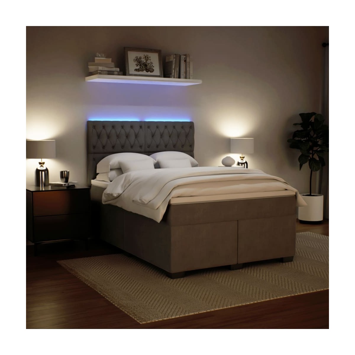 Utiliza esta cama de muelles para disfrutar de un sueño reparador. Te ofrece la máxima relajación y un sueño placentero. Material suave y cómodo: La tela de terciopelo ofrece una superficie suave y lisa que proporciona una agradable sensación contra el tacto, aportándole calidez y el máximo confort.Colchón de muelles ensacados: Este colchón de muelles ensacados cuenta con muelles ensacados individuales que funcionan de forma independiente para proporcionar un apoyo personalizado reaccionando únicamente a la presión de cada zona. Este diseño evita que se enrolle y reduce la transferencia de movimiento en comparación con los colchones tradicionales de bobina abierta. Cada muelle ensacado sostiene el cuerpo individualmente.Luces LED para un ambiente agradable: Esta cama cuenta con luces LED que se pueden ajustar fácilmente para crear un espectáculo de luces personalizado. Puedes personalizar los modos, los colores y el brillo para mejorar el ambiente de tu espacio interior.Cabecero regulable en altura: El cabecero es ajustable en altura para adaptarse a tus preferencias.Cubrecolchón cómodo: Este cubrecolchón mejora el soporte y la comodidad con su superficie suave y transpirable al tiempo que prolonga la vida útil de su colchón. Su funda extraíble permite un fácil lavado, lo que facilita el mantenimiento.Información útil:El producto tiene un conector USB que necesita una fuente de alimentación USB certificada de 5 V (no incluida).Por razones de higiene, el colchón no puede devolverse si se ha quitado o abierto el embalaje.Únicamente puedes cortar por la parte con el símbolo de las tijeras y únicamente la parte con el USB seguirá funcionando como antes.