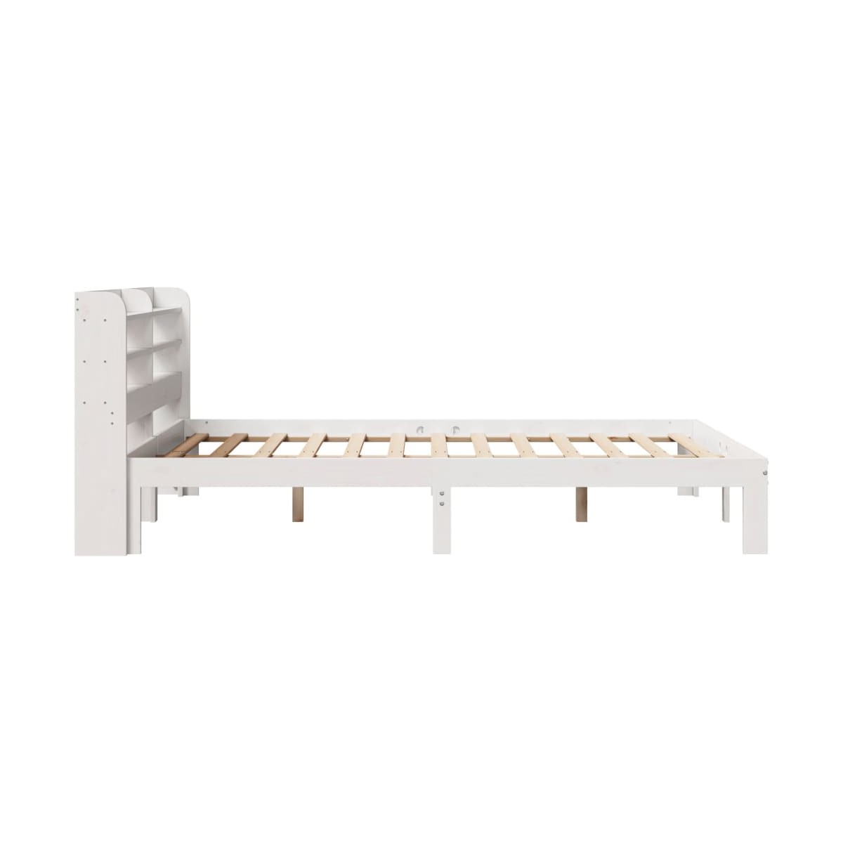 ¡Disfruta de una buena noche de sueño en esta estructura de cama de madera! Es un aporte práctico y decorativo para la casa. Madera de pino maciza: La madera de pino maciza es un bonito material natural. La madera de pino tiene vetas rectas, y los nudos dan al material su distintivo aspecto rústico.Listones de madera contrachapada: Los listones de madera contrachapada ofrecen una buena distribución del peso, lo que garantiza el tan necesario soporte y la transpirabilidad del colchón.Amplio espacio de almacenamiento: Este elegante cabecero de la cama cuenta con dos prácticos estantes, que ofrecen un amplio espacio de almacenamiento para tener todos tus artículos esenciales para la noche al alcance de la mano.Cabecero independiente: El cabecero independiente ofrece una solución sin complicaciones para colocarlo y reposicionarlo sin esfuerzo y sin necesidad de instalarlo en la pared. Información útil: El colchón no está incluido con la cama. Disponemos de una variada selección de colchones. Puedes echar un vistazo a nuestra tienda para buscar el colchón correspondiente.