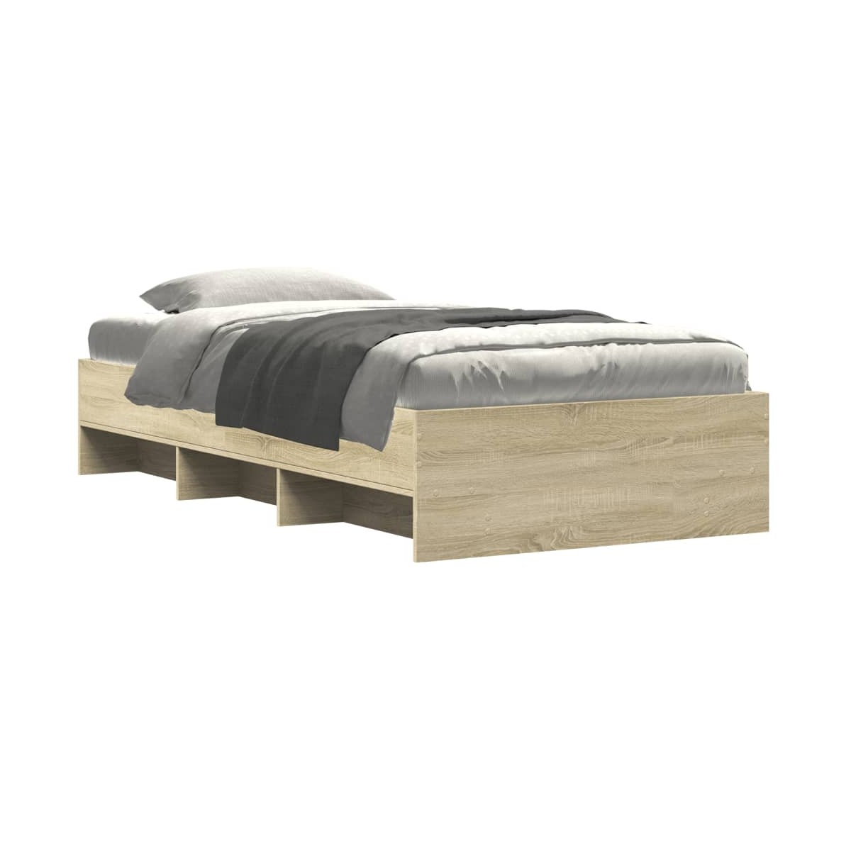 Consigue un sueño más reparador con esta estructura de cama. Es un aporte acogedor para cualquier dormitorio. Material duradero: La estructura de la cama está hecha de madera de ingeniería. La madera de ingeniería tiene una calidad excepcional, con una superficie lisa y también con fuerza, estabilidad y resistencia a la humedad.Somier de láminas para un soporte óptimo: La estructura de cama está equipada con un somier de láminas para el apoyo y la transpirabilidad del colchón.Función de almacenamiento: Este somier ofrece compartimentos abiertos para mantener tus revistas, libros, juguetes y otros objetos pequeños bien organizados. Información útil:El colchón no está incluido con la cama. Disponemos de una variada selección de colchones. Puedes echar un vistazo a nuestra tienda para buscar el colchón correspondiente.