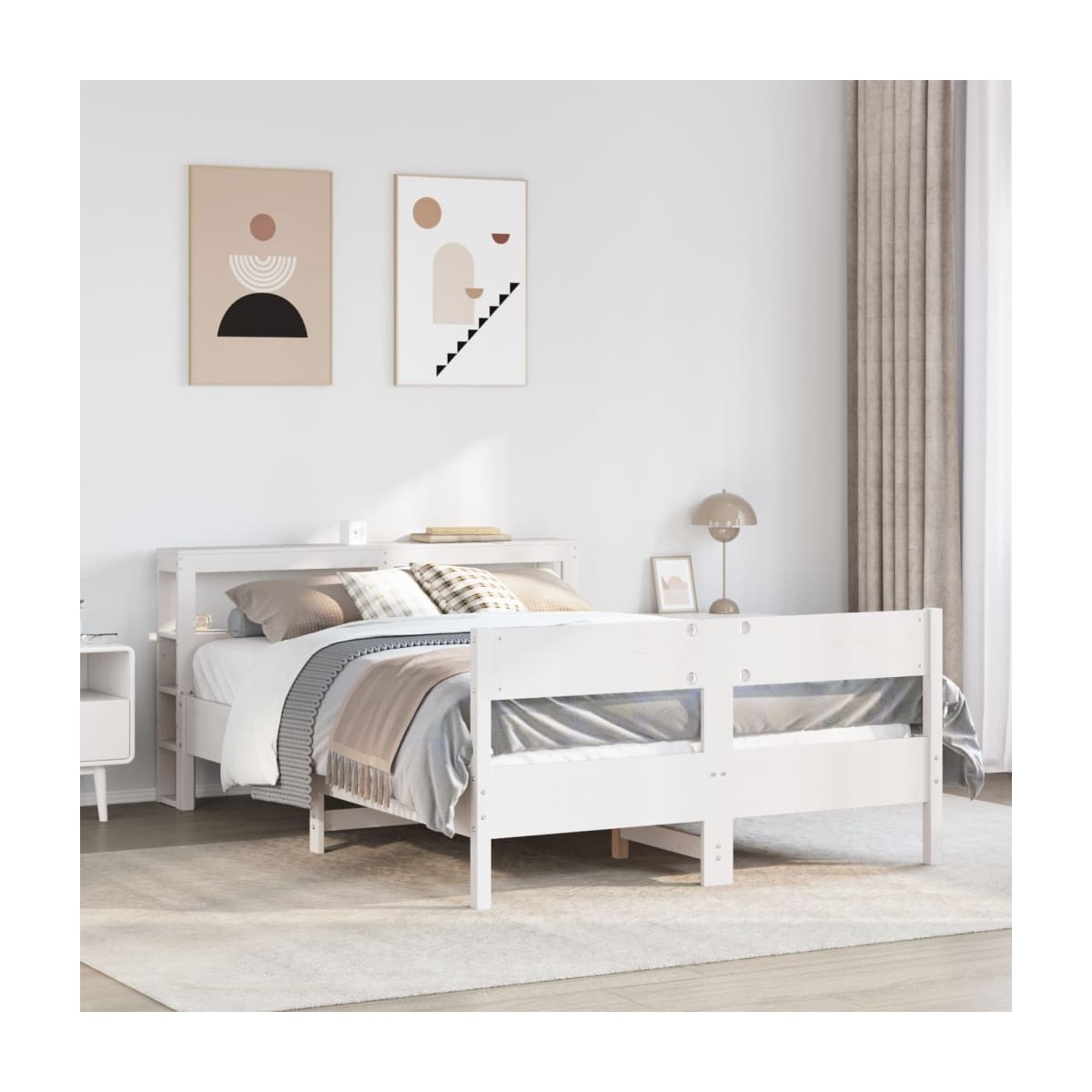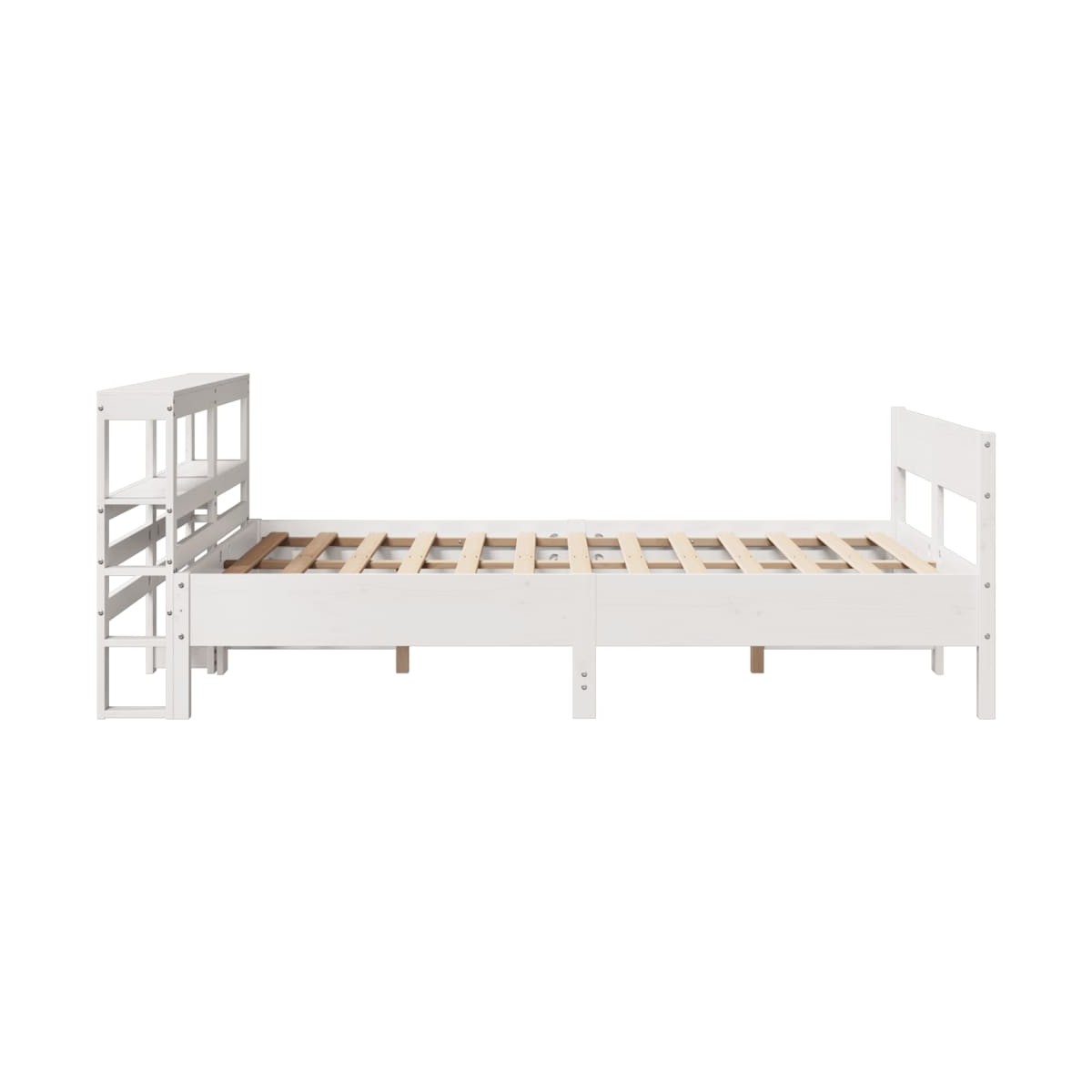 Consigue un sueño más reparador con esta estructura de cama. Es un aporte acogedor para cualquier dormitorio. Estructura estable y duradera: La madera de pino maciza es conocida por su resistencia y durabilidad. Sus vetas rectas y sus característicos nudos contribuyen a su encanto rústico.Somier de láminas para un soporte óptimo: La estructura de cama está equipada con un somier de láminas para el apoyo y la transpirabilidad del colchón.Cabecero versátil: Esta estructura de cama viene con un cabecero que proporciona un excelente soporte para la espalda cuando te sientas en la cama para leer o ver la televisión, a la vez que sirve como elemento decorativo.Amplio espacio de almacenamiento: Este elegante cabecero cuenta con dos prácticos estantes, que ofrecen un amplio espacio de almacenamiento para tener todos tus artículos esenciales para la noche al alcance de la mano. Información útil:El colchón no está incluido con la cama. Disponemos de una variada selección de colchones. Puedes echar un vistazo a nuestra tienda para buscar el colchón correspondiente.