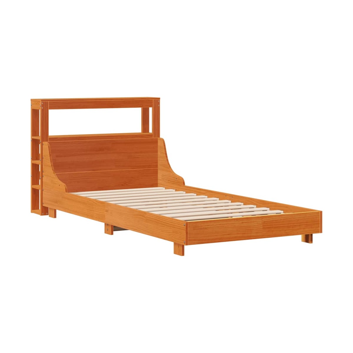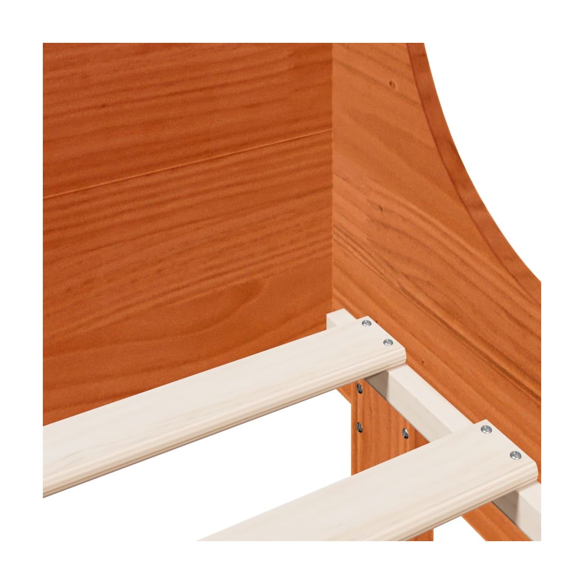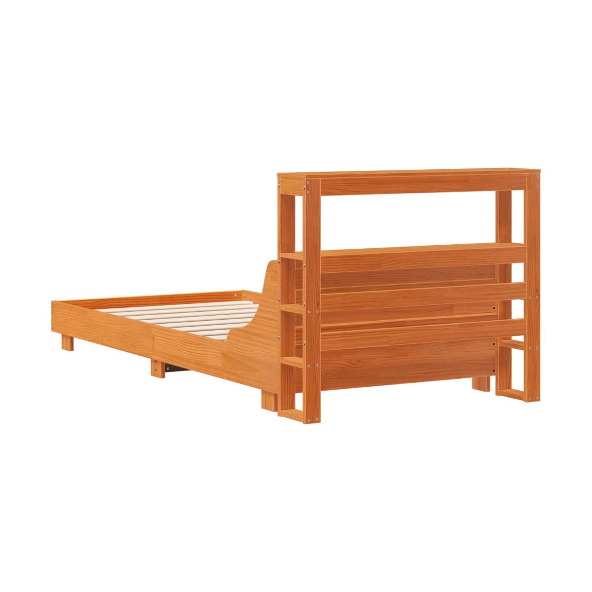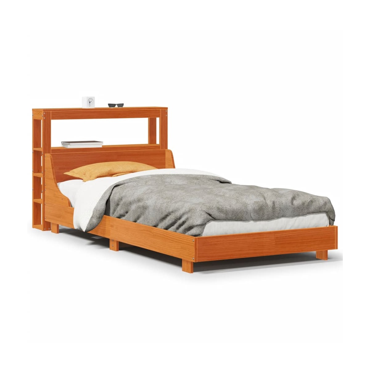 Consigue un sueño más reparador con esta estructura de cama. Es un aporte acogedor para cualquier dormitorio. Estructura estable y duradera: La madera de pino maciza es conocida por su resistencia y durabilidad. Sus vetas rectas y sus característicos nudos contribuyen a su encanto rústico.Somier de láminas para un soporte óptimo: La estructura de cama está equipada con un somier de láminas para el apoyo y la transpirabilidad del colchón.Cabecero versátil: Esta estructura de cama viene con un cabecero que proporciona un excelente soporte para la espalda cuando te sientas en la cama para leer o ver la televisión, a la vez que sirve como elemento decorativo.Amplio espacio de almacenamiento: Este elegante cabecero cuenta con dos prácticos estantes, que ofrecen un amplio espacio de almacenamiento para tener todos tus artículos esenciales para la noche al alcance de la mano. Información útil:El colchón no está incluido con la cama. Disponemos de una variada selección de colchones. Puedes echar un vistazo a nuestra tienda para buscar el colchón correspondiente.