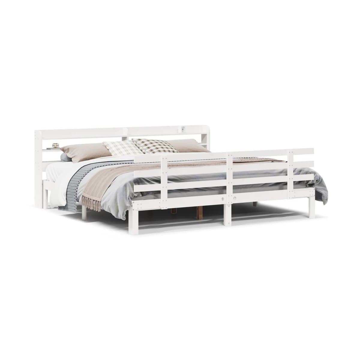 ¡Disfruta de una buena noche de sueño en esta estructura de cama de madera! Es un aporte práctico y decorativo para la casa. Madera de pino maciza: La madera de pino maciza es un bonito material natural. La madera de pino tiene vetas rectas, y los nudos dan al material su distintivo aspecto rústico.Estructura de cama resistente: La estructura de madera garantiza su solidez y estabilidad. Los listones de madera contrachapada proporcionan una buena distribución del peso, lo que garantiza que el colchón se mantenga en su sitio con cada giro y vuelta del cuerpo mientras duermes.Cabecero y estribo de cama útiles: El cabecero y el estribo de la cama de madera mantienen el colchón en su lugar. Además, la cabecera te brinda un excelente soporte para la espalda mientras estás sentado leyendo o mirando la televisión.Amplio espacio de almacenamiento: Este elegante cabecero cuenta con dos prácticos estantes, que ofrecen un amplio espacio de almacenamiento para tener todos tus artículos esenciales para la noche al alcance de la mano. Información útil:El colchón no está incluido con la cama. Disponemos de una variada selección de colchones. Puedes echar un vistazo a nuestra tienda para buscar el colchón correspondiente.