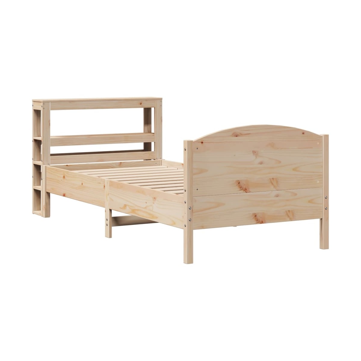 Consigue un sueño más reparador con esta estructura de cama. Es un aporte acogedor para cualquier dormitorio. Estructura estable y duradera: La madera de pino maciza es conocida por su resistencia y durabilidad. Sus vetas rectas y sus característicos nudos contribuyen a su encanto rústico.Somier de láminas para un soporte óptimo: La estructura de cama está equipada con un somier de láminas para el apoyo y la transpirabilidad del colchón.Cabecero versátil: Esta estructura de cama viene con un cabecero que proporciona un excelente soporte para la espalda cuando te sientas en la cama para leer o ver la televisión, a la vez que sirve como elemento decorativo.Amplio espacio de almacenamiento: Este elegante cabecero cuenta con dos prácticos estantes, que ofrecen un amplio espacio de almacenamiento para tener todos tus artículos esenciales para la noche al alcance de la mano. Información útil:El colchón no está incluido con la cama. Disponemos de una variada selección de colchones. Puedes echar un vistazo a nuestra tienda para buscar el colchón correspondiente.