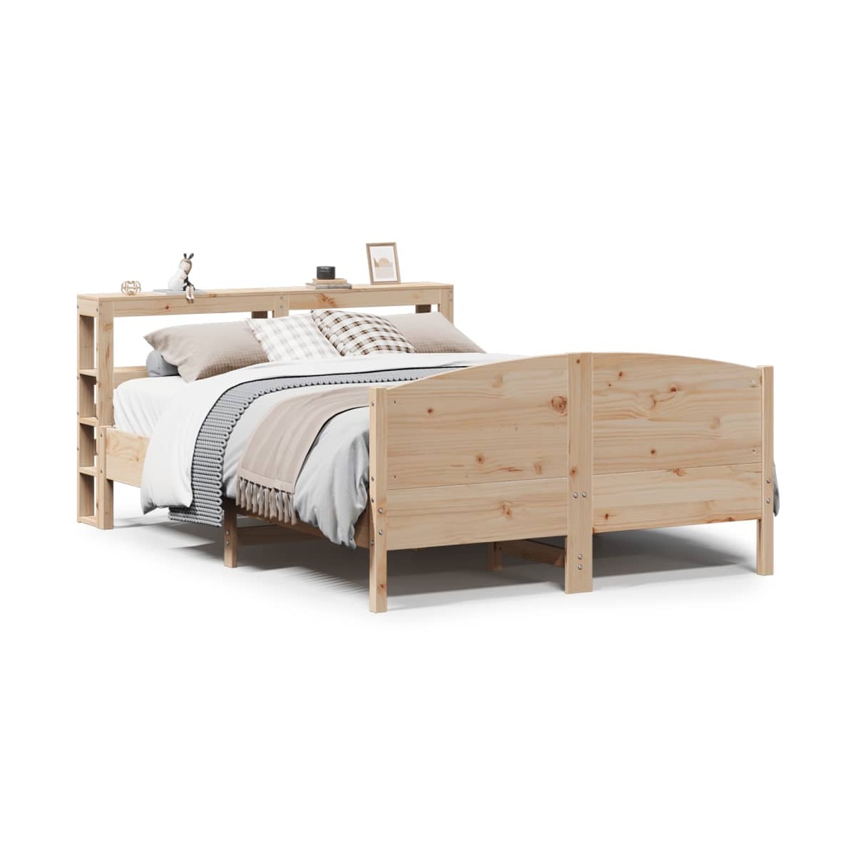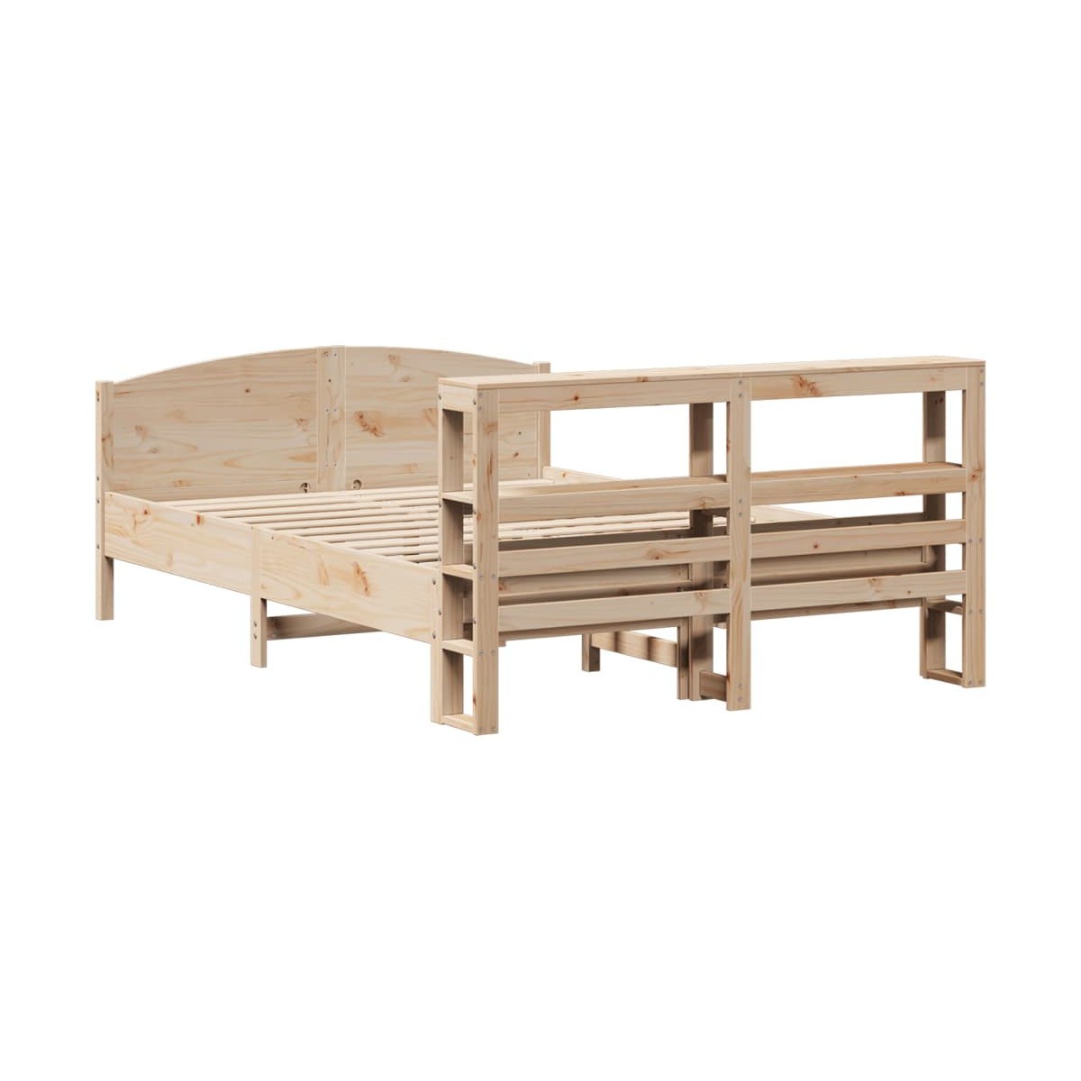 Consigue un sueño más reparador con esta estructura de cama. Es un aporte acogedor para cualquier dormitorio. Estructura estable y duradera: La madera de pino maciza es conocida por su resistencia y durabilidad. Sus vetas rectas y sus característicos nudos contribuyen a su encanto rústico.Somier de láminas para un soporte óptimo: La estructura de cama está equipada con un somier de láminas para el apoyo y la transpirabilidad del colchón.Cabecero versátil: Esta estructura de cama viene con un cabecero que proporciona un excelente soporte para la espalda cuando te sientas en la cama para leer o ver la televisión, a la vez que sirve como elemento decorativo.Amplio espacio de almacenamiento: Este elegante cabecero cuenta con dos prácticos estantes, que ofrecen un amplio espacio de almacenamiento para tener todos tus artículos esenciales para la noche al alcance de la mano. Información útil:El colchón no está incluido con la cama. Disponemos de una variada selección de colchones. Puedes echar un vistazo a nuestra tienda para buscar el colchón correspondiente.