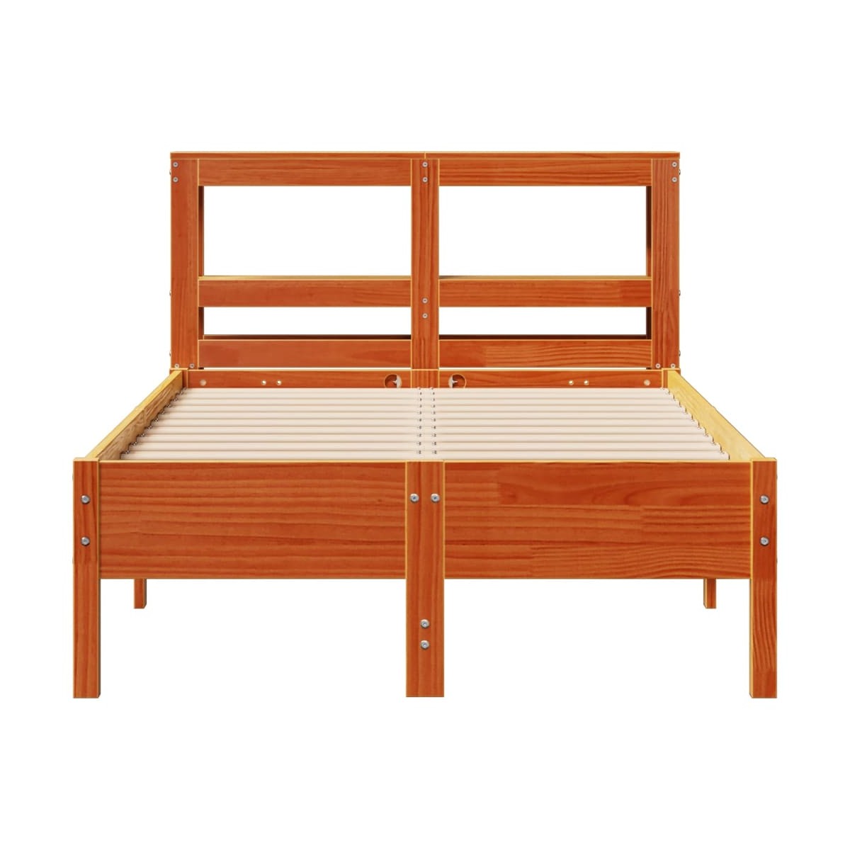 Consigue un sueño más reparador con esta estructura de cama. Es un aporte acogedor para cualquier dormitorio. Estructura estable y duradera: La madera de pino maciza es conocida por su resistencia y durabilidad. Sus vetas rectas y sus característicos nudos contribuyen a su encanto rústico.Somier de láminas para un soporte óptimo: La estructura de cama está equipada con un somier de láminas para el apoyo y la transpirabilidad del colchón.Cabecero versátil: Esta estructura de cama viene con un cabecero que proporciona un excelente soporte para la espalda cuando te sientas en la cama para leer o ver la televisión, a la vez que sirve como elemento decorativo.Amplio espacio de almacenamiento: Este elegante cabecero cuenta con dos prácticos estantes, que ofrecen un amplio espacio de almacenamiento para tener todos tus artículos esenciales para la noche al alcance de la mano. Información útil:El colchón no está incluido con la cama. Disponemos de una variada selección de colchones. Puedes echar un vistazo a nuestra tienda para buscar el colchón correspondiente.
