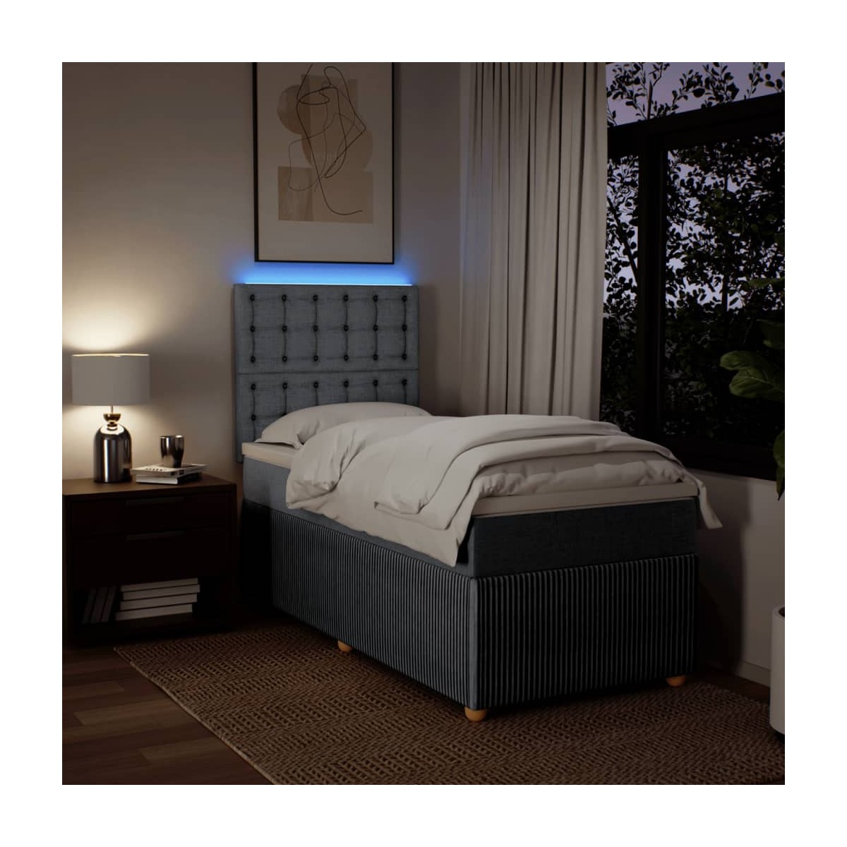 Utiliza esta cama de muelles para disfrutar de un sueño reparador. Te ofrece la máxima relajación y un sueño placentero. Material suave y duradero: El tejido de poliéster combina suavidad, transpirabilidad y durabilidad, lo que garantiza que experimentes la máxima comodidad. Colchón de muelles ensacados: Este colchón de muelles ensacados cuenta con muelles ensacados individuales que funcionan de forma independiente para proporcionar un apoyo personalizado reaccionando únicamente a la presión de cada zona. Este diseño evita que se enrolle y reduce la transferencia de movimiento en comparación con los colchones tradicionales de bobina abierta. Cada muelle ensacado sostiene el cuerpo individualmente. Luces LED para un ambiente agradable: Esta cama cuenta con luces LED que se pueden ajustar fácilmente para crear un espectáculo de luces personalizado. Puedes personalizar los modos, los colores y el brillo para mejorar el ambiente de tu espacio interior. Cabecero regulable en altura: El cabecero es ajustable en altura para adaptarse a tus preferencias. Cubrecolchón cómodo: Este cubrecolchón mejora el soporte y la comodidad con su superficie suave y transpirable al tiempo que prolonga la vida útil de su colchón. Su funda extraíble permite un fácil lavado, lo que facilita el mantenimiento. Información útil: El producto tiene un conector USB que necesita una fuente de alimentación USB certificada de 5 V (no incluida). Por razones de higiene, el colchón no puede devolverse si se ha quitado o abierto el embalaje. Únicamente puedes cortar por la parte con el símbolo de las tijeras y únicamente la parte con el USB seguirá funcionando como antes.