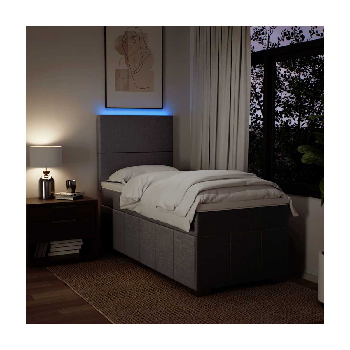 Utiliza esta cama de muelles para disfrutar de un sueño reparador. Te ofrece la máxima relajación y un sueño placentero. Material suave y duradero: El tejido de poliéster combina suavidad, transpirabilidad y durabilidad, lo que garantiza que experimentes la máxima comodidad. Colchón de muelles ensacados: Este colchón de muelles ensacados cuenta con muelles ensacados individuales que funcionan de forma independiente para proporcionar un apoyo personalizado reaccionando únicamente a la presión de cada zona. Este diseño evita que se enrolle y reduce la transferencia de movimiento en comparación con los colchones tradicionales de bobina abierta. Cada muelle ensacado sostiene el cuerpo individualmente. Luces LED para un ambiente agradable: Esta cama cuenta con luces LED que se pueden ajustar fácilmente para crear un espectáculo de luces personalizado. Puedes personalizar los modos, los colores y el brillo para mejorar el ambiente de tu espacio interior. Cabecero regulable en altura: El cabecero es ajustable en altura para adaptarse a tus preferencias. Cubrecolchón cómodo: Este cubrecolchón mejora el soporte y la comodidad con su superficie suave y transpirable al tiempo que prolonga la vida útil de su colchón. Su funda extraíble permite un fácil lavado, lo que facilita el mantenimiento. Información útil:El producto tiene un conector USB que necesita una fuente de alimentación USB certificada de 5 V (no incluida). Por razones de higiene, el colchón no puede devolverse si se ha quitado o abierto el embalaje. Únicamente puedes cortar por la parte con el símbolo de las tijeras y únicamente la parte con el USB seguirá funcionando como antes.
