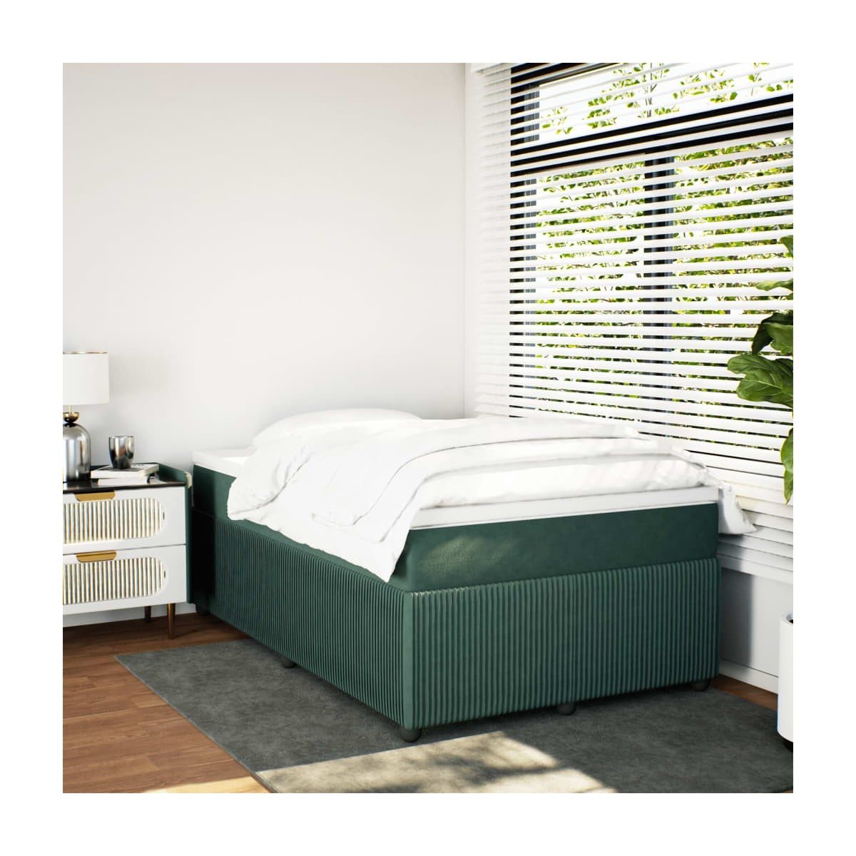 Utiliza esta cama de muelles para disfrutar de un sueño reparador. Te ofrece la máxima relajación y un sueño placentero. Terciopelo suave: El terciopelo es una tela suave y lujosa, reconocida por su denso pelo de fibras cortadas de forma uniforme que tienen una suave pelusa. La tela de terciopelo posee un característico y suave tacto, lo que hace que sea cómoda al tacto.Colchón de muelles ensacados: Este colchón de muelles ensacados cuenta con muelles ensacados individuales que funcionan de forma independiente para proporcionar un apoyo personalizado reaccionando únicamente a la presión de cada zona. Este diseño evita que se enrolle y reduce la transferencia de movimiento en comparación con los colchones tradicionales de bobina abierta. Cada muelle ensacado sostiene el cuerpo individualmente.Cubrecolchón cómodo: Este cubrecolchón mejora el soporte y la comodidad con su superficie suave y transpirable al tiempo que prolonga la vida útil de su colchón. Su funda extraíble permite un fácil lavado, lo que facilita el mantenimiento.Listones para un soporte óptimo: El somier se completa con listones para ofrecer un soporte esencial y transpirabilidad a tu colchón.Patas estables y duraderas: Esta cama está sostenida por patas resistentes, lo que garantiza estabilidad, seguridad y firmeza. Información útil:Por razones de higiene, el colchón no puede devolverse si se ha quitado o abierto el embalaje.