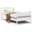 Consigue un sueño más reparador con esta estructura de cama. Es un aporte acogedor para cualquier dormitorio. Estructura estable y duradera: La madera de pino maciza es conocida por su resistencia y durabilidad. Sus vetas rectas y sus característicos nudos contribuyen a su encanto rústico.Somier de láminas para un soporte óptimo: La estructura de cama está equipada con un somier de láminas para el apoyo y la transpirabilidad del colchón.Amplio espacio de almacenamiento: Este elegante cabecero cuenta con dos prácticos estantes, que ofrecen un amplio espacio de almacenamiento para tener todos tus artículos esenciales para la noche al alcance de la mano.Cabecero independiente: El cabecero independiente ofrece una solución sin complicaciones para colocarlo y reposicionarlo sin esfuerzo y sin necesidad de instalarlo en la pared. Información útil:El colchón no está incluido con la cama. Disponemos de una variada selección de colchones. Puedes echar un vistazo a nuestra tienda para buscar el colchón correspondiente.