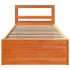 Consigue un sueño más reparador con esta estructura de cama. Es un aporte acogedor para cualquier dormitorio. Estructura estable y duradera: La madera de pino maciza es conocida por su resistencia y durabilidad. Sus vetas rectas y sus característicos nudos contribuyen a su encanto rústico.Somier de láminas para un soporte óptimo: La estructura de cama está equipada con un somier de láminas para el apoyo y la transpirabilidad del colchón.Amplio espacio de almacenamiento: Este elegante cabecero de la cama cuenta con dos prácticos estantes, que ofrecen un amplio espacio de almacenamiento para tener todos tus artículos esenciales para la noche al alcance de la mano.Cabecero independiente: El cabecero independiente ofrece una solución sin complicaciones para colocarlo y reposicionarlo sin esfuerzo y sin necesidad de instalarlo en la pared. Información útil:El colchón no está incluido con la cama. Disponemos de una variada selección de colchones. Puedes echar un vistazo a nuestra tienda para buscar el colchón correspondiente.