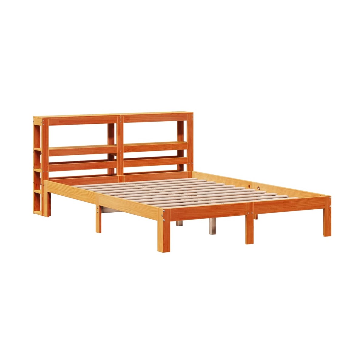 Consigue un sueño más reparador con esta estructura de cama. Es un aporte acogedor para cualquier dormitorio. Estructura estable y duradera: La madera de pino maciza es conocida por su resistencia y durabilidad. Sus vetas rectas y sus característicos nudos contribuyen a su encanto rústico.Somier de láminas para un soporte óptimo: La estructura de cama está equipada con un somier de láminas para el apoyo y la transpirabilidad del colchón.Amplio espacio de almacenamiento: Este elegante cabecero cuenta con dos prácticos estantes, que ofrecen un amplio espacio de almacenamiento para tener todos tus artículos esenciales para la noche al alcance de la mano.Cabecero independiente: El cabecero independiente ofrece una solución sin complicaciones para colocarlo y reposicionarlo sin esfuerzo y sin necesidad de instalarlo en la pared. Información útil:El colchón no está incluido con la cama. Disponemos de una variada selección de colchones. Puedes echar un vistazo a nuestra tienda para buscar el colchón correspondiente.