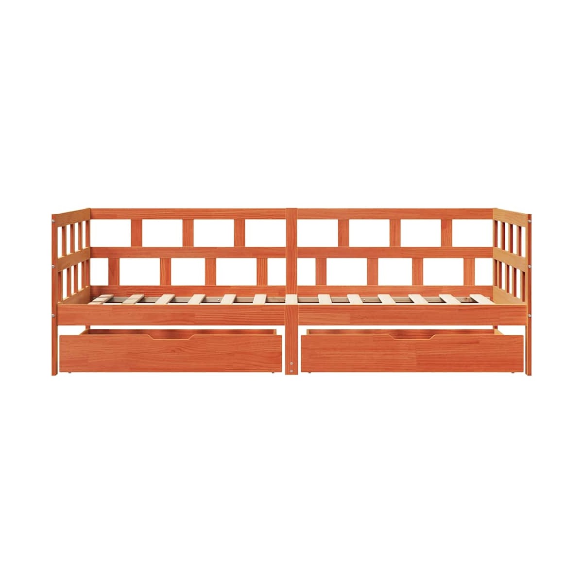 Este sofá cama 2 en 1 con cajones, que sirve como sofá y cama, es un complemento práctico y llamativo para tu salón o dormitorio. Estructura estable y duradera: La madera de pino maciza es conocida por su resistencia y durabilidad. Sus vetas rectas y sus característicos nudos contribuyen a su encanto rústico.Barreras de cama de 3 lados: Esta cama tiene un diseño único en el lateral de la cama, que proporciona una sensación de seguridad y además añade un toque de estilo sofisticado a tu hogar.Listones para un soporte óptimo: El sofá cama se completa con listones para ofrecer un soporte esencial y transpirabilidad a tu colchón.Encanto rústico: El sofá cama da a tu espacio matices rústicos que pueden ser realmente relajantes. El efecto calmante de este sofá cama de madera convierte cualquier dormitorio o habitación de invitados en un lugar relajante, al tiempo que añade un elemento natural a la habitación.Amplio espacio de almacenamiento: Esta cama de invitados tiene dos cajones que brindan un amplio espacio para guardar ropa, calcetines, juguetes, cojines, etc. Información útil:El colchón no está incluido con la cama. Ofrecemos una variada selección de colchones. Puedes echar un vistazo a nuestra tienda para buscar el correspondiente colchón.