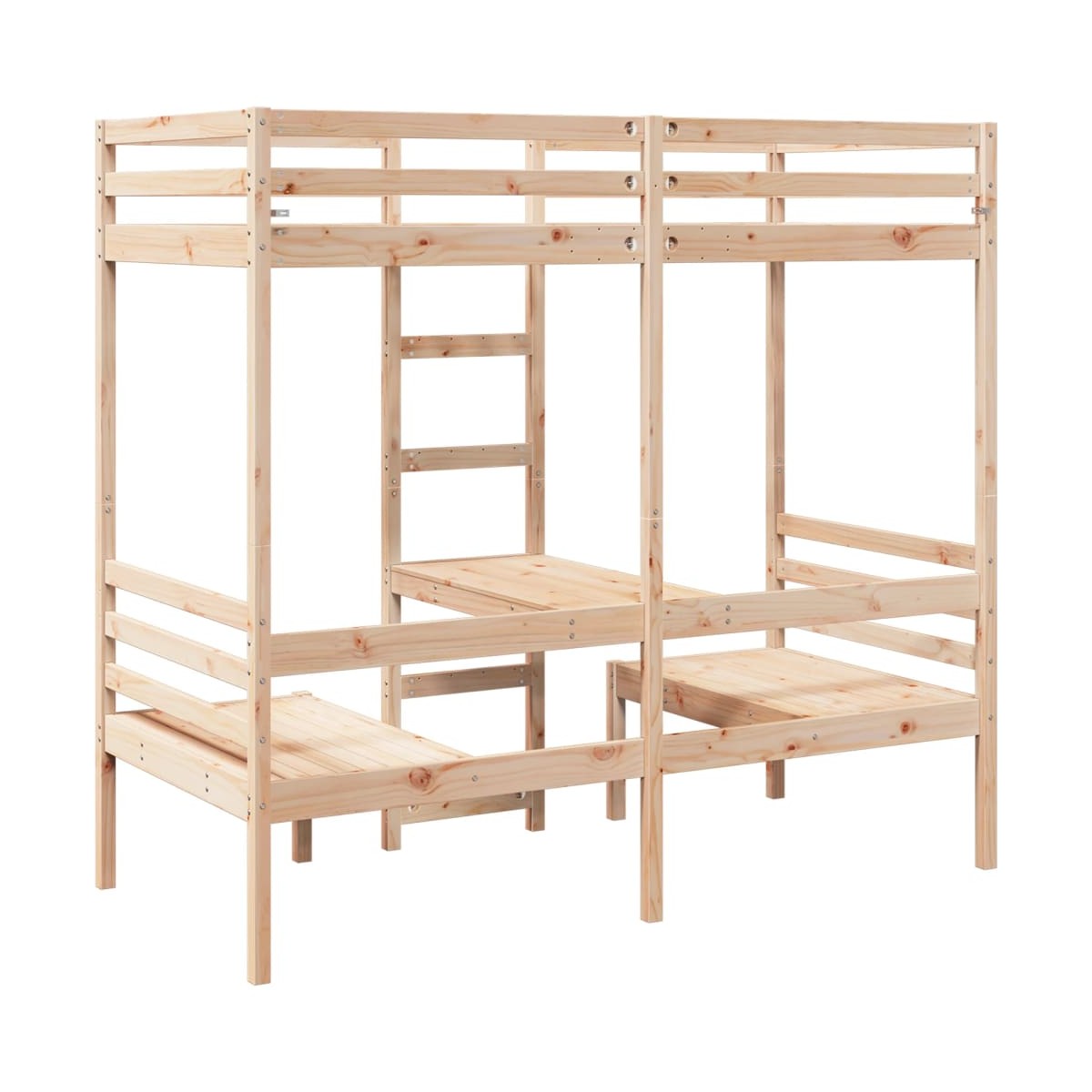 Esta versátil cama alta integra una cama individual con escritorio y sillas, proporcionando un acogedor espacio para dormir y una amplia zona de trabajo. Es una opción ideal para viviendas con espacio limitado.Estructura estable y duradera: La madera de pino maciza es conocida por su resistencia y durabilidad. Sus vetas rectas y sus característicos nudos contribuyen a su encanto rústico.Maximiza el aprovechamiento del espacio: Esta estructura de cama cuenta con un escritorio y dos sillas debajo, lo que permite aprovechar eficazmente el espacio debajo de la cama para proporcionar un espacio acogedor para trabajar y estudiar. Es una opción ideal para zonas más pequeñas o más confinadas.Fácil de subir y bajar: Este somier cuenta con una escalera incorporada, que proporciona un cómodo acceso para que los usuarios suban y bajen.Barandillas para mayor seguridad: Este somier está equipado con barandillas para evitar que te caigas de la cama mientras duermes.Somier de láminas para un soporte óptimo: La estructura de cama está equipada con un somier de láminas para el apoyo y la transpirabilidad del colchón.Advertencia:Para evitar que vuelque, este producto debe usarse con el dispositivo de fijación a la pared suministrado.Información útil:El colchón no está incluido con la cama. Disponemos de una variada selección de colchones. Puedes echar un vistazo a nuestra tienda para buscar el colchón correspondiente.Los tornillos y los tacos para el interior de la pared no están incluidos. Recomendamos encontrar y utilizar tornillos y tacos adecuados específicamente para las paredes. Si no estás seguro, puedes consultar con un profesional. Lee y sigue cada paso de las instrucciones.