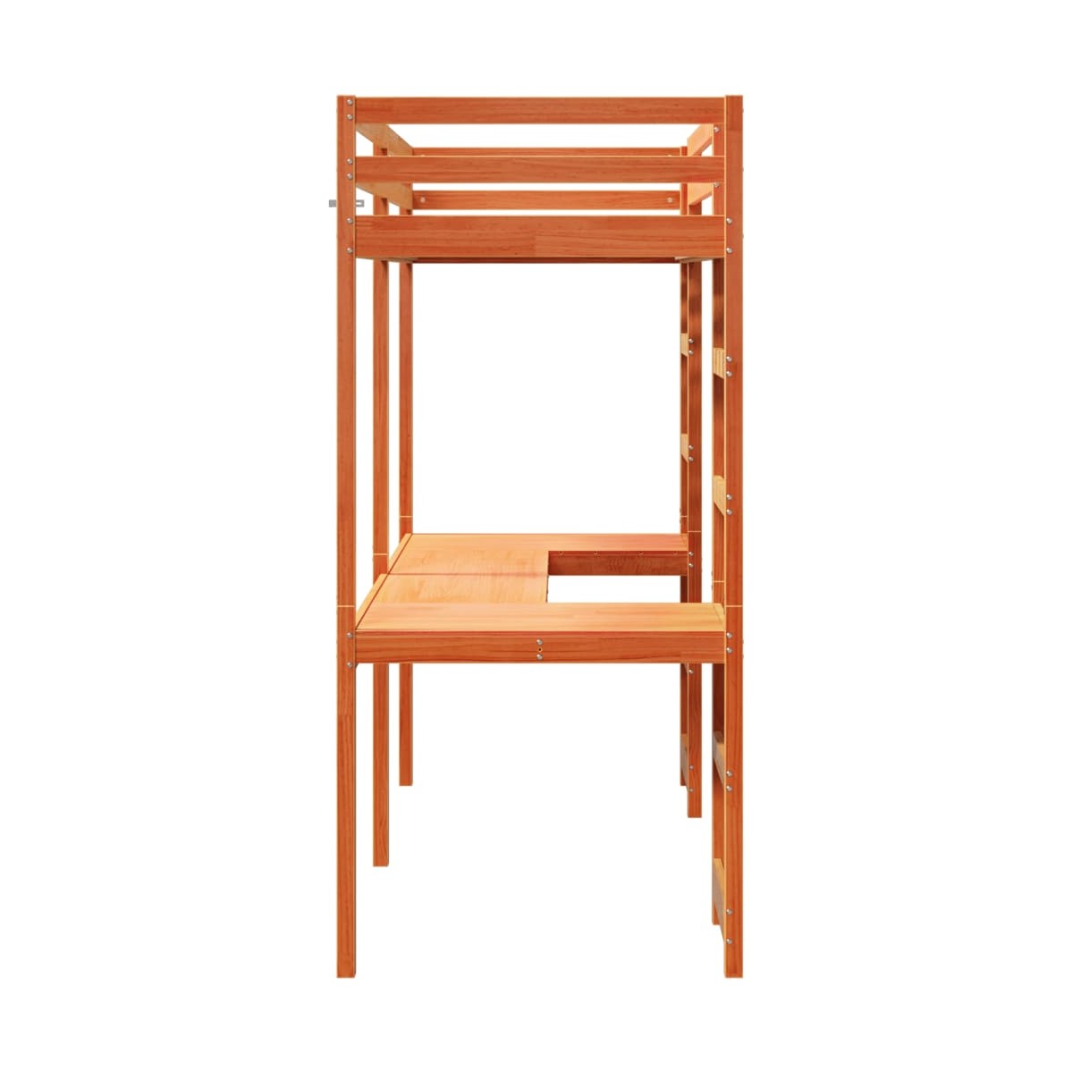 Esta versátil cama alta integra una cama individual con un escritorio, proporcionando un acogedor espacio para dormir y una amplia zona de trabajo. Es una opción ideal para viviendas con espacio limitado.Estructura estable y duradera: La madera de pino maciza es conocida por su resistencia y durabilidad. Sus vetas rectas y sus característicos nudos contribuyen a su encanto rústico.Maximiza la utilización del espacio: Esta estructura de cama cuenta con un escritorio debajo, que utiliza eficazmente el espacio debajo de la cama para proporcionar un espacio acogedor para trabajar y estudiar. Es una opción ideal para zonas más pequeñas o más confinadas.Fácil de subir y bajar: Este somier cuenta con dos escaleras incorporadas, que proporciona un cómodo acceso para que los usuarios suban y bajen.Barandillas para mayor seguridad: Este somier está equipado con barandillas para evitar que te caigas de la cama mientras duermes.Somier de láminas para un soporte óptimo: La estructura de cama está equipada con un somier de láminas para el apoyo y la transpirabilidad del colchón.Advertencia:Para evitar que vuelque, este producto debe usarse con el dispositivo de fijación a la pared suministrado.Información útil:El colchón no está incluido con la cama. Disponemos de una variada selección de colchones. Puedes echar un vistazo a nuestra tienda para buscar el colchón correspondiente.Los tornillos y los tacos para el interior de la pared no están incluidos. Recomendamos encontrar y utilizar tornillos y tacos adecuados específicamente para las paredes. Si no estás seguro, puedes consultar con un profesional. Lee y sigue cada paso de las instrucciones.