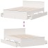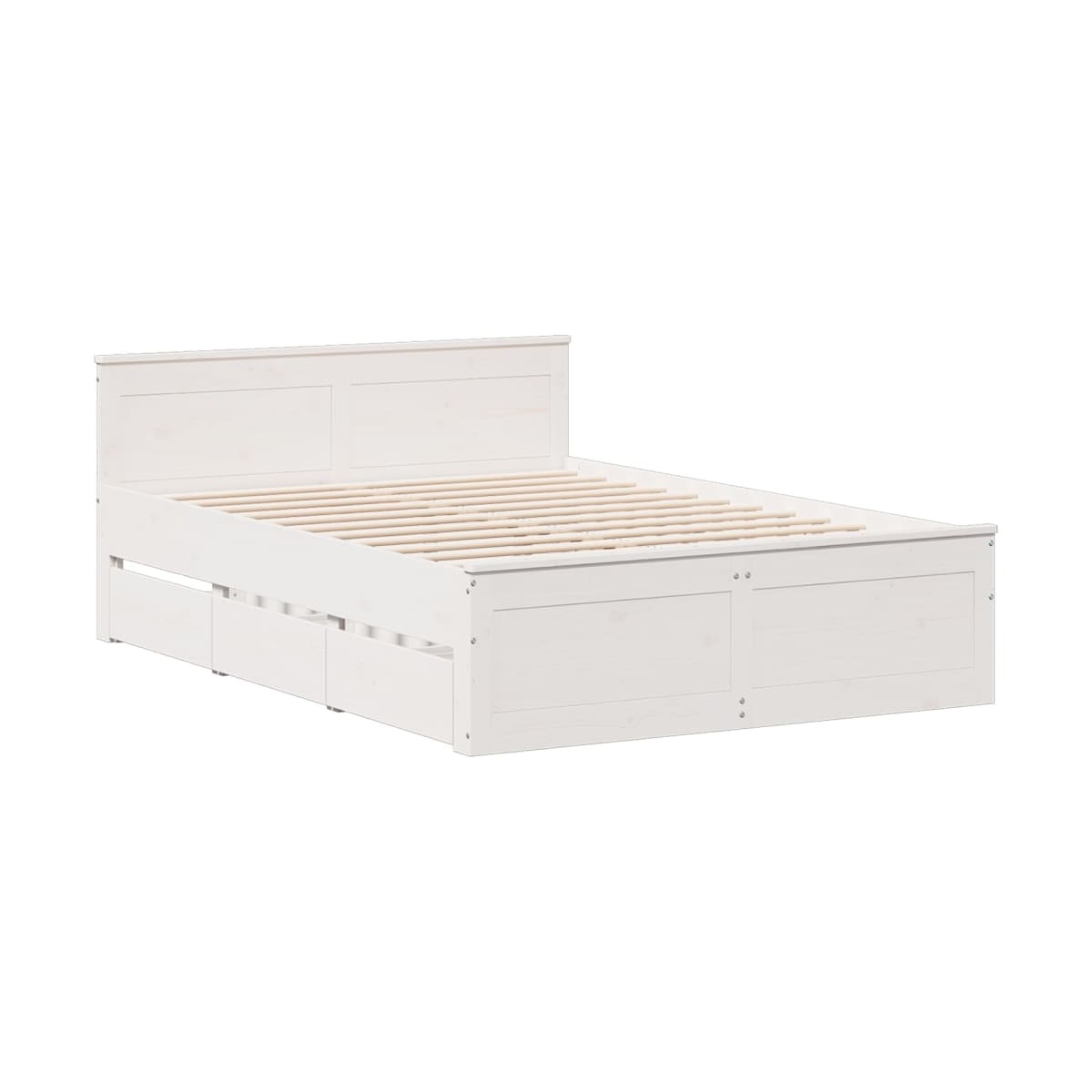 Consigue un sueño más reparador con esta estructura de cama. Es un aporte acogedor para cualquier dormitorio. Estructura estable y duradera: La madera de pino maciza es conocida por su resistencia y durabilidad. Sus vetas rectas y sus característicos nudos contribuyen a su encanto rústico.Somier de láminas para un soporte óptimo: La estructura de cama está equipada con un somier de láminas para el apoyo y la transpirabilidad del colchón.Patas estables y duraderas: Esta cama está sostenida por patas resistentes, lo que garantiza estabilidad, seguridad y firmeza.Cabecero funcional: El cabecero de la cama de madera puede mantener el colchón en su sitio. Además, el cabecero te brinda un excelente soporte para la espalda mientras estás sentado leyendo o mirando la televisión.Función de almacenamiento: Este somier ofrece cajones para mantener tus revistas, libros, juguetes y otros objetos pequeños bien organizados. Información útil:El colchón no está incluido con la cama. Disponemos de una variada selección de colchones. Puedes echar un vistazo a nuestra tienda para buscar el colchón correspondiente.