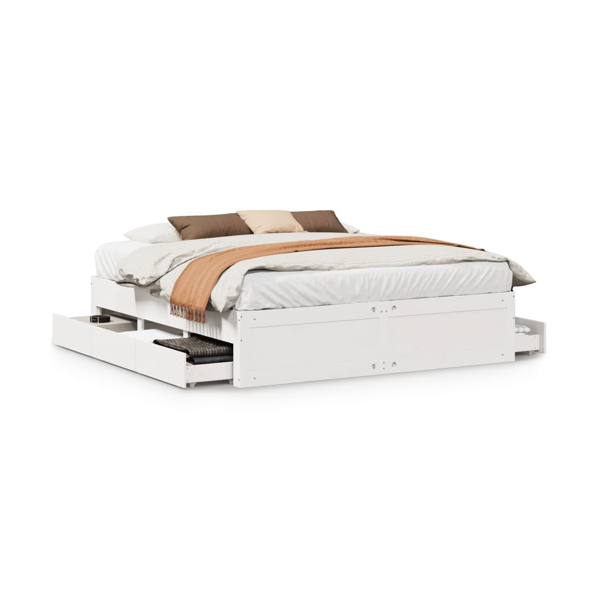 Consigue un sueño más reparador con esta estructura de cama. Es un aporte acogedor para cualquier dormitorio. Estructura estable y duradera: La madera de pino maciza es conocida por su resistencia y durabilidad. Sus vetas rectas y sus característicos nudos contribuyen a su encanto rústico.Somier de láminas para un soporte óptimo: La estructura de cama está equipada con un somier de láminas para el apoyo y la transpirabilidad del colchón.Patas estables y duraderas: Esta cama está sostenida por patas resistentes, lo que garantiza estabilidad, seguridad y firmeza.Función de almacenamiento: Este somier ofrece cajones para mantener tus revistas, libros, juguetes y otros objetos pequeños bien organizados. Información útil:El colchón no está incluido con la cama. Disponemos de una variada selección de colchones. Puedes echar un vistazo a nuestra tienda para buscar el colchón correspondiente.