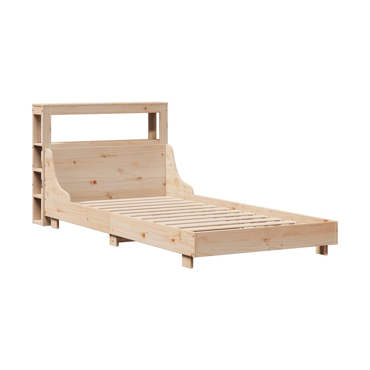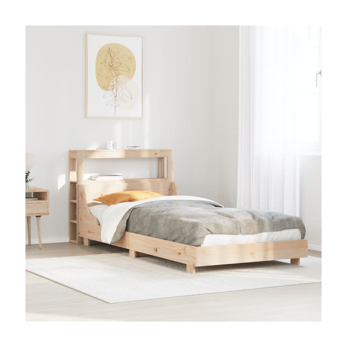 Consigue un sueño más reparador con esta estructura de cama. Es un aporte acogedor para cualquier dormitorio. Estructura estable y duradera: La madera de pino maciza es conocida por su resistencia y durabilidad. Sus vetas rectas y sus característicos nudos contribuyen a su encanto rústico.Somier de láminas para un soporte óptimo: La estructura de cama está equipada con un somier de láminas para el apoyo y la transpirabilidad del colchón.Cabecero versátil: Esta estructura de cama viene con un cabecero que proporciona un excelente soporte para la espalda cuando te sientas en la cama para leer o ver la televisión, a la vez que sirve como elemento decorativo.Amplio espacio de almacenamiento: Este elegante cabecero cuenta con dos prácticos estantes, que ofrecen un amplio espacio de almacenamiento para tener todos tus artículos esenciales para la noche al alcance de la mano. Información útil:El colchón no está incluido con la cama. Disponemos de una variada selección de colchones. Puedes echar un vistazo a nuestra tienda para buscar el colchón correspondiente.