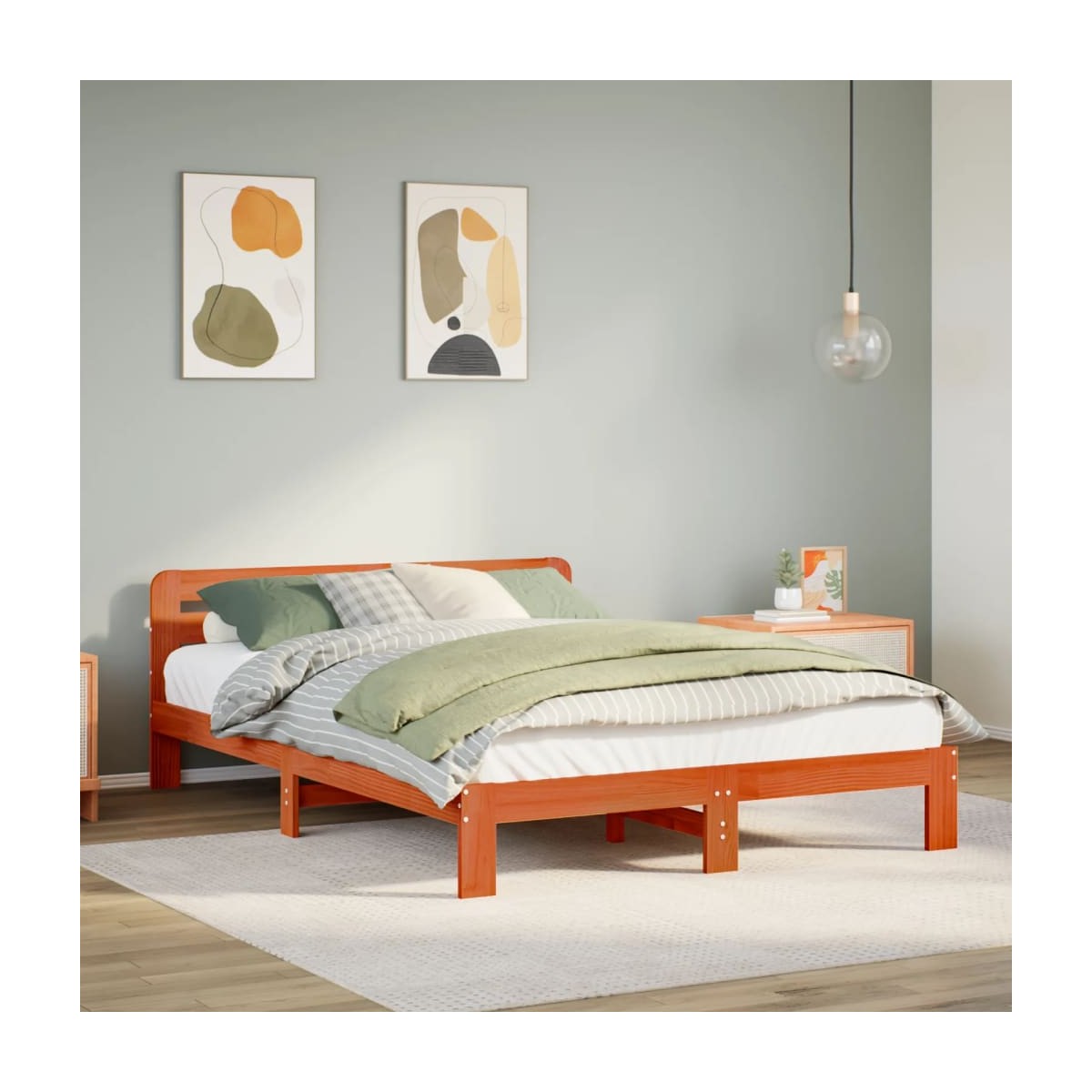 Consigue un sueño más reparador con esta estructura de cama. Es un aporte acogedor para cualquier dormitorio. Estructura estable y duradera: La madera de pino maciza es conocida por su resistencia y durabilidad. Sus vetas rectas y sus característicos nudos contribuyen a su encanto rústico.Somier de láminas para un soporte óptimo: El base de cama está equipado con un somier de láminas para el apoyo y la transpirabilidad del colchón.Espacio de almacenamiento adicional: Para mayor comodidad, la cama de madera dispone de un espacio debajo para guardar tus cajas de almacenaje y que no se vean.Patas estables y duraderas: Este somier está sostenido por patas resistentes, lo que garantiza estabilidad, seguridad y firmeza.Cabecero versátil: Esta cama de paneles viene con un cabecero que proporciona un excelente soporte para la espalda cuando te sientas en la cama para leer o ver la televisión, a la vez que sirve como elemento decorativo. Información útil:El colchón no está incluido con la cama. Disponemos de una variada selección de colchones. Puedes echar un vistazo a nuestra tienda para buscar el colchón correspondiente.