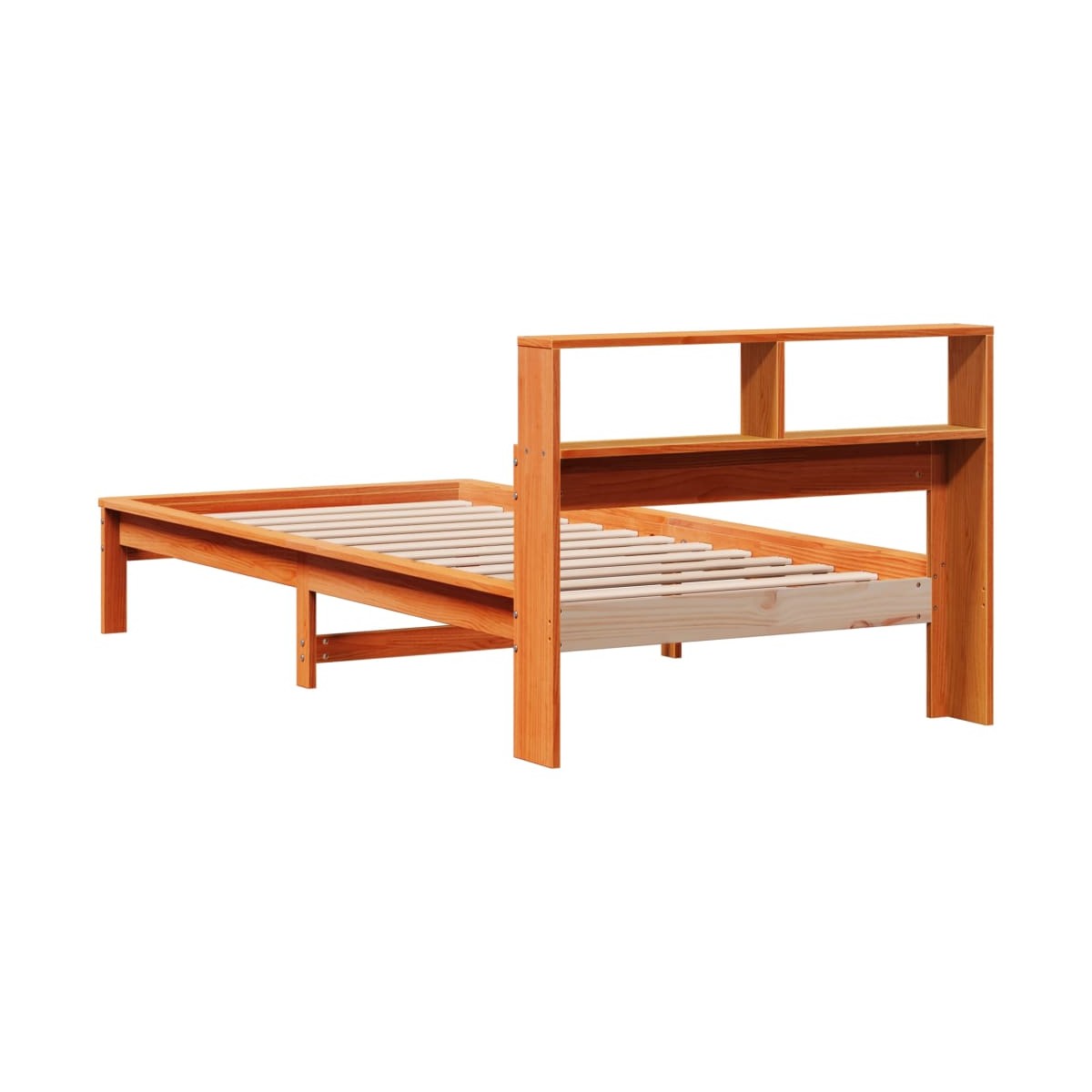 ¡Consigue una mejor noche de sueño reparador con esta cama con estantería! Es un aporte acogedor para cualquier dormitorio. Estructura estable y duradera: La madera de pino maciza es conocida por su resistencia y durabilidad. Sus vetas rectas y sus característicos nudos contribuyen a su encanto rústico.Somier de láminas para un soporte óptimo: El base de cama está equipado con un somier de láminas para el apoyo y la transpirabilidad del colchón.Amplio espacio de almacenamiento: El cabecero de estantería ofrece un amplio espacio de almacenamiento para mantener libros, artículos decorativos o pertenencias personales al alcance de la mano, lo que reduce el desorden en el dormitorio.Patas estables y duraderas: Este somier está sostenido por patas resistentes, lo que garantiza estabilidad, seguridad y firmeza.Ahorro de espacio: Este cabecero es una opción de ahorro de espacio que puede sustituir la necesidad de una mesilla de noche, ayudando a maximizar el espacio de tu dormitorio, y haciéndolo ideal para espacios pequeños o limitados. Información útil:El colchón no está incluido con la cama. Disponemos de una variada selección de colchones. Puedes echar un vistazo a nuestra tienda para buscar el colchón correspondiente.