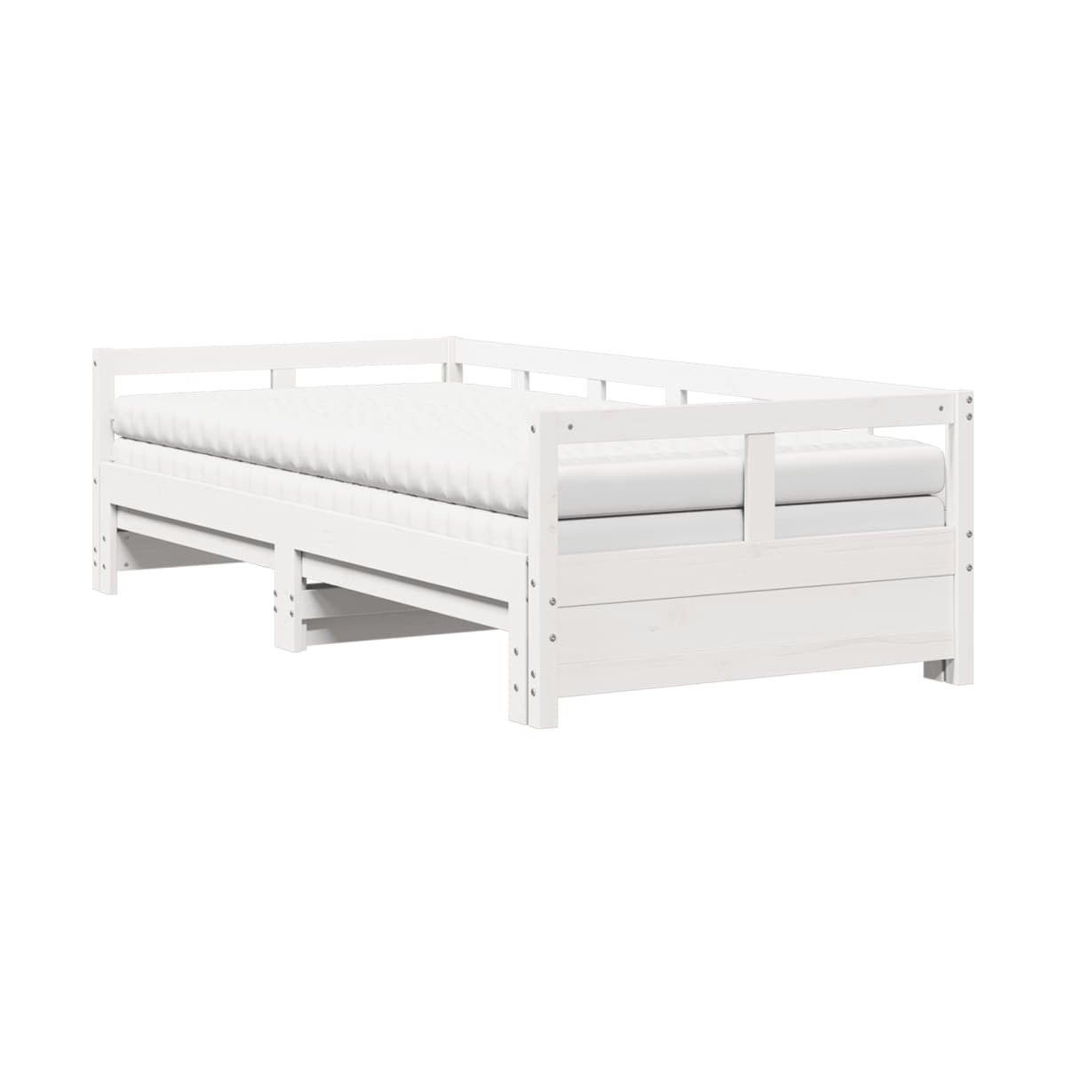 Este sofá cama 2 en 1 con cama nido y colchones, que sirve como sofá y cama, es un complemento práctico y llamativo para tu salón o dormitorio. Estructura estable y duradera: La madera de pino maciza es conocida por su resistencia y durabilidad. Sus vetas rectas y sus característicos nudos contribuyen a su encanto rústico.Sofá cama versátil: El sofá cama funciona como sofá durante el día y se convierte fácilmente en una cama doble por la noche sacando la cama nido, lo que proporciona una solución práctica para recibir invitados y maximizar el espacio.Cómodo colchón de espuma: Esta cama se suministra con dos colchones de espuma para un máximo apoyo y una comodidad óptima.Somier de láminas para un soporte óptimo: La cama de invitados está equipada con un somier de láminas para el apoyo y la transpirabilidad del colchón.Patas estables y duraderas: Este sofá cama extensible está sostenida por patas resistentes, lo que garantiza estabilidad, seguridad y firmeza.