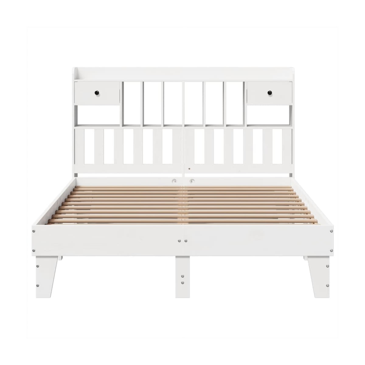 Consigue un sueño más reparador con esta estructura de cama. Es un aporte acogedor para cualquier dormitorio. Estructura estable y duradera: La madera de pino maciza es conocida por su resistencia y durabilidad. Sus vetas rectas y sus característicos nudos contribuyen a su encanto rústico.Somier de láminas para un soporte óptimo: El base de cama está equipado con un somier de láminas para el apoyo y la transpirabilidad del colchón.Espacio de almacenamiento extra: Este elegante cabecero cuenta con 6 prácticos compartimentos y 2 cajones, lo que ofrece un amplio espacio de almacenamiento para mantener todos tus artículos esenciales de la noche al alcance de la mano. Para mayor comodidad, la cama de madera tiene un espacio adicional debajo para mantener tus cajas de almacenamiento fuera de la vista.Patas estables y duraderas: Este somier está sostenido por patas resistentes, lo que garantiza estabilidad, seguridad y firmeza.Cabecero independiente: El cabecero independiente ofrece una solución sin complicaciones para colocarlo y reposicionarlo sin esfuerzo y sin necesidad de instalarlo en la pared. Información útil:El colchón no está incluido con la cama. Disponemos de una variada selección de colchones. Puedes echar un vistazo a nuestra tienda para buscar el colchón correspondiente.