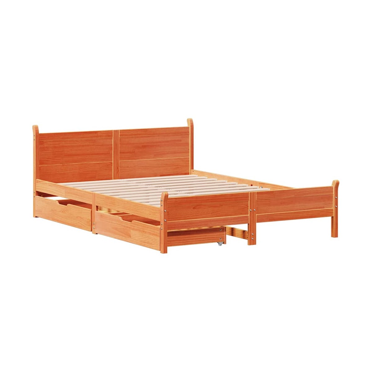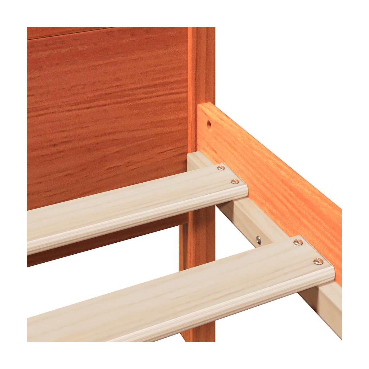 Consigue un sueño más reparador con esta estructura de cama. Es un aporte acogedor para cualquier dormitorio. Estructura estable y duradera: La madera de pino maciza es conocida por su resistencia y durabilidad. Sus vetas rectas y sus característicos nudos contribuyen a su encanto rústico.Somier de láminas para un soporte óptimo: El base de cama está equipado con un somier de láminas para el apoyo y la transpirabilidad del colchón.Maniobrabilidad sin esfuerzo: Este cajón de almacenamiento bajo la cama cuenta con cuatro ruedas, que proporcionan una maniobrabilidad suave y sin esfuerzo para deslizarse dentro y fuera de debajo de tu cama.Patas estables y duraderas: Este somier está sostenido por patas resistentes, lo que garantiza estabilidad, seguridad y firmeza.Cabecero versátil: Esta cama de paneles viene con un cabecero que proporciona un excelente soporte para la espalda cuando te sientas en la cama para leer o ver la televisión, a la vez que sirve como elemento decorativo. Información útil:El colchón no está incluido con la cama. Disponemos de una variada selección de colchones. Puedes echar un vistazo a nuestra tienda para buscar el colchón correspondiente.