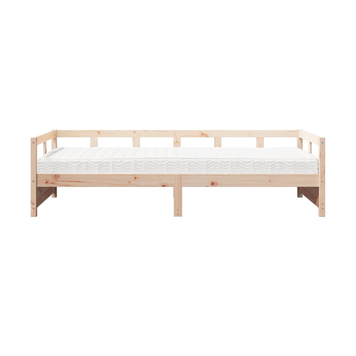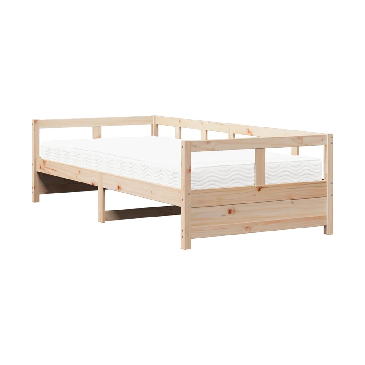 Este sofá cama 2 en 1 con colchón, que sirve como sofá y cama, es un complemento práctico y llamativo para tu salón o dormitorio. Estructura estable y duradera: La madera de pino maciza es conocida por su resistencia y durabilidad. Sus vetas rectas y sus característicos nudos contribuyen a su encanto rústico.Sofá cama versátil: El sofá cama funciona como sofá durante el día y se convierte fácilmente en una cama doble por la noche sacando la cama nido, lo que proporciona una solución práctica para recibir invitados y maximizar el espacio.Cómodo colchón de espuma: Esta cama se suministra con un colchón de espuma para un máximo apoyo y una comodidad óptima.Somier de láminas para un soporte óptimo: La cama de invitados está equipada con un somier de láminas para el apoyo y la transpirabilidad del colchón.Patas estables y duraderas: Este sofá cama extensible está sostenida por patas resistentes, lo que garantiza estabilidad, seguridad y firmeza.