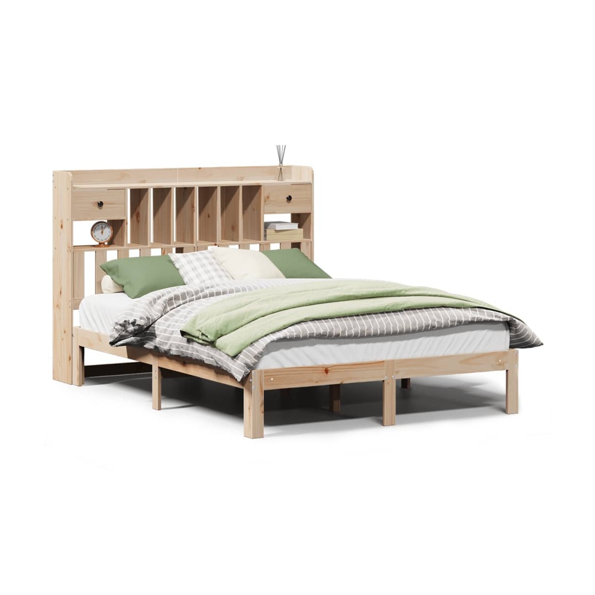 ¡Consigue una mejor noche de sueño reparador con esta cama con estantería! Es un aporte acogedor para cualquier dormitorio. Estructura estable y duradera: La madera de pino maciza es conocida por su resistencia y durabilidad. Sus vetas rectas y sus característicos nudos contribuyen a su encanto rústico. Somier de láminas para un soporte óptimo: La estructura de cama está equipada con un somier de láminas para el apoyo y la transpirabilidad del colchón. Amplio espacio de almacenamiento: El cabecero de estantería ofrece un amplio espacio de almacenamiento para mantener libros, artículos decorativos o pertenencias personales al alcance de la mano, lo que reduce el desorden en el dormitorio. Ahorro de espacio: Este cabecero es una opción de ahorro de espacio que puede sustituir la necesidad de una mesilla de noche, ayudando a maximizar el espacio de tu dormitorio, y haciéndolo ideal para espacios pequeños o limitados. Información útil:El colchón no está incluido con la cama. Disponemos de una variada selección de colchones. Puedes echar un vistazo a nuestra tienda para buscar el colchón correspondiente.