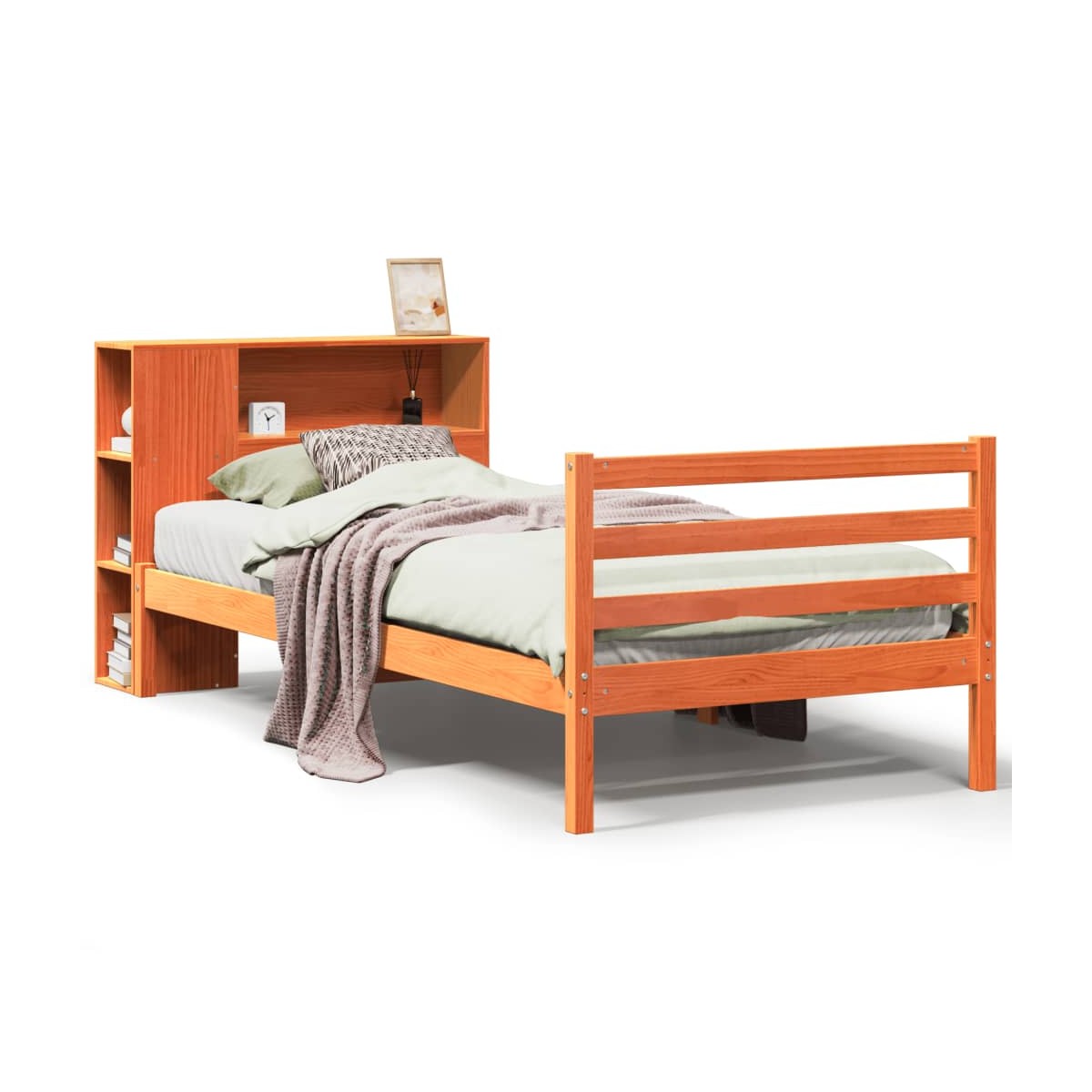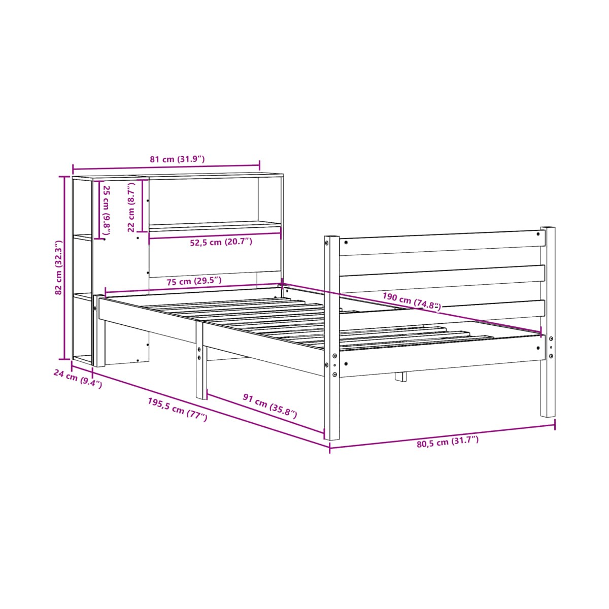 ¡Consigue una mejor noche de sueño reparador con esta cama con estantería! Es un aporte acogedor para cualquier dormitorio. Estructura estable y duradera: La madera de pino maciza es conocida por su resistencia y durabilidad. Sus vetas rectas y sus característicos nudos contribuyen a su encanto rústico.Somier de láminas para un soporte óptimo: La estructura de cama está equipada con un somier de láminas para el apoyo y la transpirabilidad del colchón.Amplio espacio de almacenamiento: El cabecero de estantería ofrece un amplio espacio de almacenamiento para mantener libros, artículos decorativos o pertenencias personales al alcance de la mano, lo que reduce el desorden en el dormitorio.Práctico pie de cama: El pie de cama no solo contribuye a la estabilidad general del marco de la cama, proporcionando un entorno seguro para dormir, sino que también asegura su colchón en su lugar y evita que las mantas, sábanas y otra ropa de cama se caigan del extremo de la cama, manteniendo una apariencia ordenada.Ahorro de espacio: Este cabecero es una opción de ahorro de espacio que puede sustituir la necesidad de una mesilla de noche, ayudando a maximizar el espacio de tu dormitorio, y haciéndolo ideal para espacios pequeños o limitados. Información útil:El colchón no está incluido con la cama. Disponemos de una variada selección de colchones. Puedes echar un vistazo a nuestra tienda para buscar el colchón correspondiente.