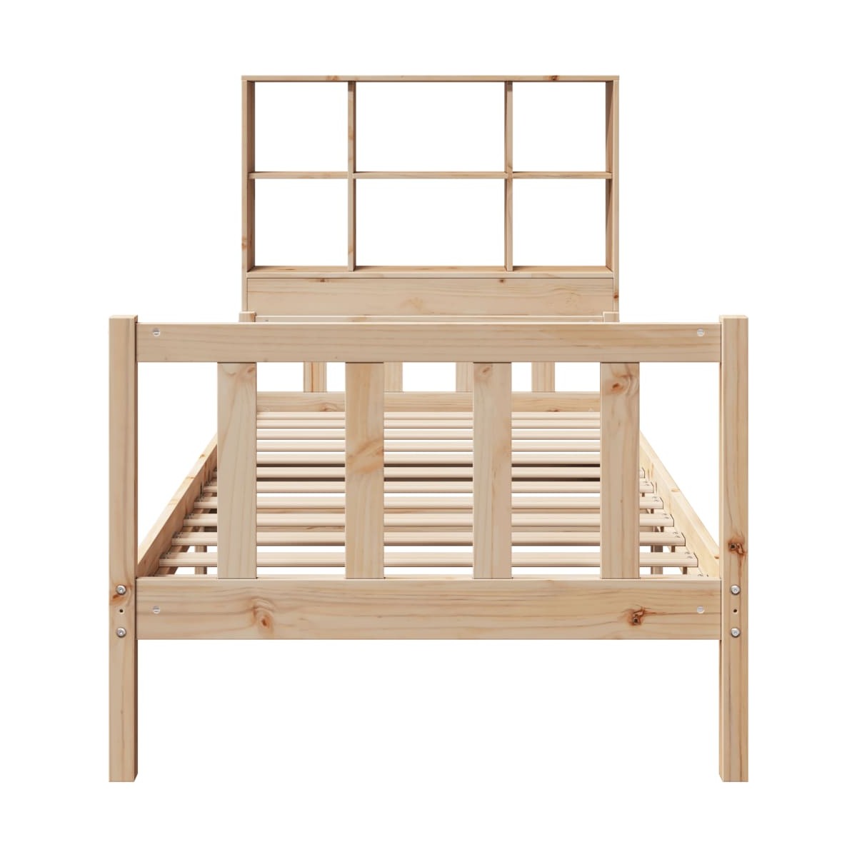 ¡Consigue una mejor noche de sueño reparador con esta cama con estantería! Es un aporte acogedor para cualquier dormitorio. Estructura estable y duradera: La madera de pino maciza es conocida por su resistencia y durabilidad. Sus vetas rectas y sus característicos nudos contribuyen a su encanto rústico.Somier de láminas para un soporte óptimo: La estructura de cama está equipada con un somier de láminas para el apoyo y la transpirabilidad del colchón.Amplio espacio de almacenamiento: El cabecero de estantería ofrece un amplio espacio de almacenamiento para mantener libros, artículos decorativos o pertenencias personales al alcance de la mano, lo que reduce el desorden en el dormitorio.Práctico pie de cama: El pie de cama no solo contribuye a la estabilidad general del marco de la cama, proporcionando un entorno seguro para dormir, sino que también asegura su colchón en su lugar y evita que las mantas, sábanas y otra ropa de cama se caigan del extremo de la cama, manteniendo una apariencia ordenada.Ahorro de espacio: Este cabecero es una opción de ahorro de espacio que puede sustituir la necesidad de una mesilla de noche, ayudando a maximizar el espacio de tu dormitorio, y haciéndolo ideal para espacios pequeños o limitados. Información útil:El colchón no está incluido con la cama. Disponemos de una variada selección de colchones. Puedes echar un vistazo a nuestra tienda para buscar el colchón correspondiente.