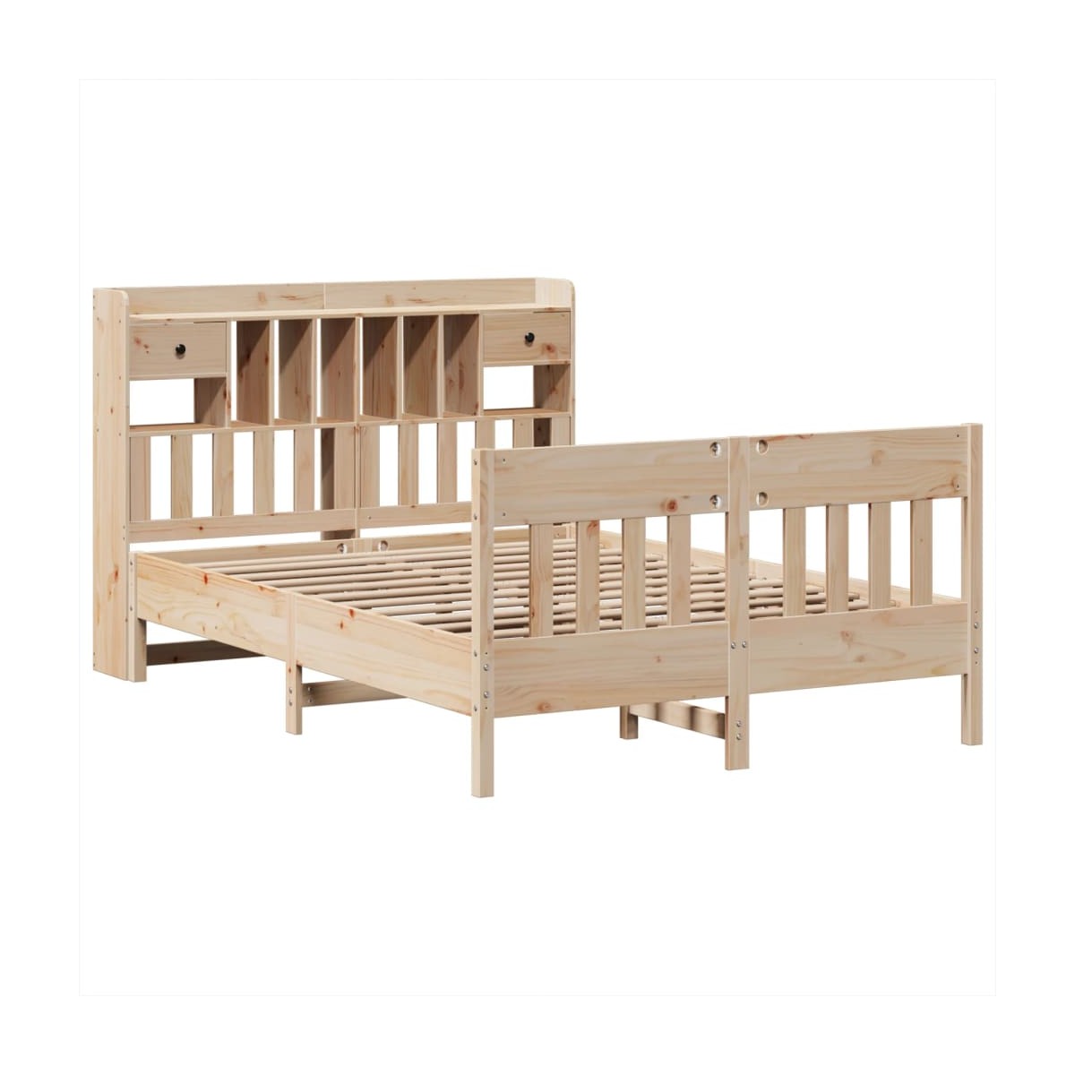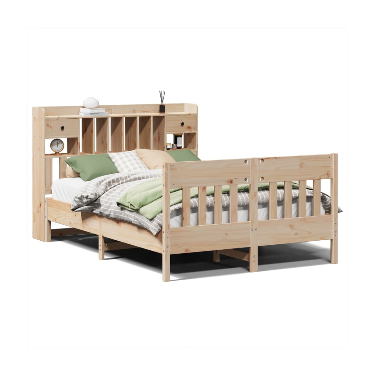 ¡Disfruta de una buena noche de sueño en esta estructura de cama de madera! Es un aporte práctico y decorativo para la casa. Estructura estable y duradera: La madera de pino maciza es conocida por su resistencia y durabilidad. Sus vetas rectas y sus característicos nudos contribuyen a su encanto rústico.Somier de láminas para un soporte óptimo: El base de cama está equipado con un somier de láminas para el apoyo y la transpirabilidad del colchón.Espacio de almacenamiento extra: Este elegante cabecero cuenta con 6 prácticos compartimentos y 2 cajones, lo que ofrece un amplio espacio de almacenamiento para mantener todos tus artículos esenciales de la noche al alcance de la mano. Para mayor comodidad, la cama de madera tiene un espacio adicional debajo para mantener tus cajas de almacenamiento fuera de la vista.Patas estables y duraderas: Este somier está sostenido por patas resistentes, lo que garantiza estabilidad, seguridad y firmeza.Cabecero y estribo de cama funcionales: El cabecero y el estribo de cama mantienen el colchón en su lugar. Además, la cabecera te brinda un excelente soporte para la espalda mientras estás sentado leyendo o mirando la televisión. Información útil:El colchón no está incluido con la cama. Disponemos de una variada selección de colchones. Puedes echar un vistazo a nuestra tienda para buscar el colchón correspondiente.