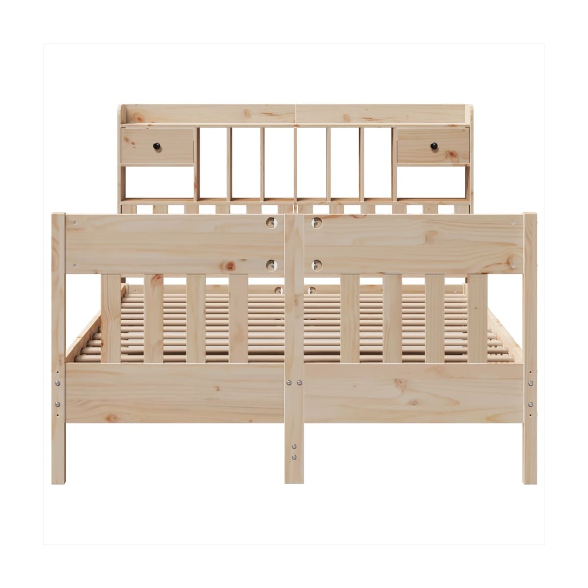 ¡Disfruta de una buena noche de sueño en esta estructura de cama de madera! Es un aporte práctico y decorativo para la casa. Estructura estable y duradera: La madera de pino maciza es conocida por su resistencia y durabilidad. Sus vetas rectas y sus característicos nudos contribuyen a su encanto rústico.Somier de láminas para un soporte óptimo: El base de cama está equipado con un somier de láminas para el apoyo y la transpirabilidad del colchón.Espacio de almacenamiento extra: Este elegante cabecero cuenta con 6 prácticos compartimentos y 2 cajones, lo que ofrece un amplio espacio de almacenamiento para mantener todos tus artículos esenciales de la noche al alcance de la mano. Para mayor comodidad, la cama de madera tiene un espacio adicional debajo para mantener tus cajas de almacenamiento fuera de la vista.Patas estables y duraderas: Este somier está sostenido por patas resistentes, lo que garantiza estabilidad, seguridad y firmeza.Cabecero y estribo de cama funcionales: El cabecero y el estribo de cama mantienen el colchón en su lugar. Además, la cabecera te brinda un excelente soporte para la espalda mientras estás sentado leyendo o mirando la televisión. Información útil:El colchón no está incluido con la cama. Disponemos de una variada selección de colchones. Puedes echar un vistazo a nuestra tienda para buscar el colchón correspondiente.