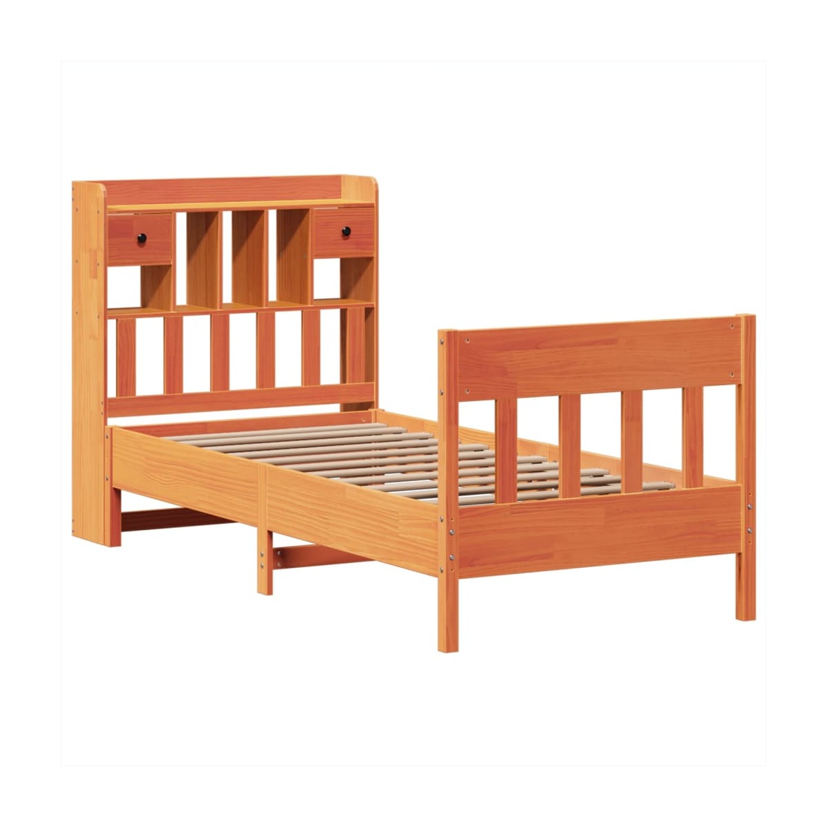 ¡Disfruta de una buena noche de sueño en esta estructura de cama de madera! Es un aporte práctico y decorativo para la casa. Estructura estable y duradera: La madera de pino maciza es conocida por su resistencia y durabilidad. Sus vetas rectas y sus característicos nudos contribuyen a su encanto rústico.Somier de láminas para un soporte óptimo: El base de cama está equipado con un somier de láminas para el apoyo y la transpirabilidad del colchón.Amplio espacio de almacenamiento: Este elegante cabecero cuenta con 3 prácticos compartimentos y 2 cajones, lo que ofrece un amplio espacio de almacenamiento para mantener todos los elementos esenciales de la noche al alcance de la mano. Para mayor comodidad, la cama de madera tiene un espacio adicional debajo para mantener sus cajas de almacenamiento fuera de la vista.Patas estables y duraderas: Este somier está sostenido por patas resistentes, lo que garantiza estabilidad, seguridad y firmeza.Cabecero y estribo de cama funcionales: El cabecero y el estribo de cama mantienen el colchón en su lugar. Además, la cabecera te brinda un excelente soporte para la espalda mientras estás sentado leyendo o mirando la televisión. Información útil:El colchón no está incluido con la cama. Disponemos de una variada selección de colchones. Puedes echar un vistazo a nuestra tienda para buscar el colchón correspondiente.