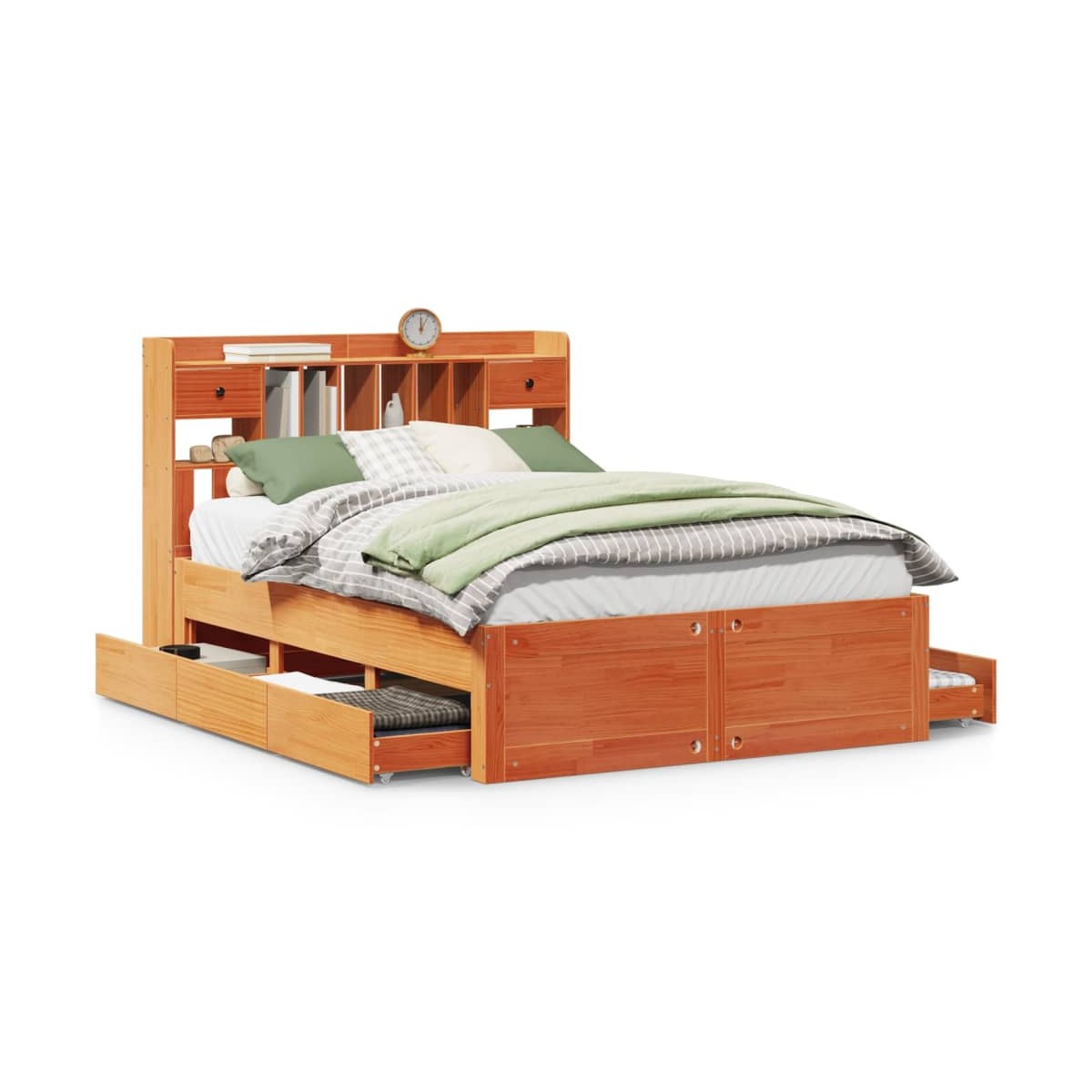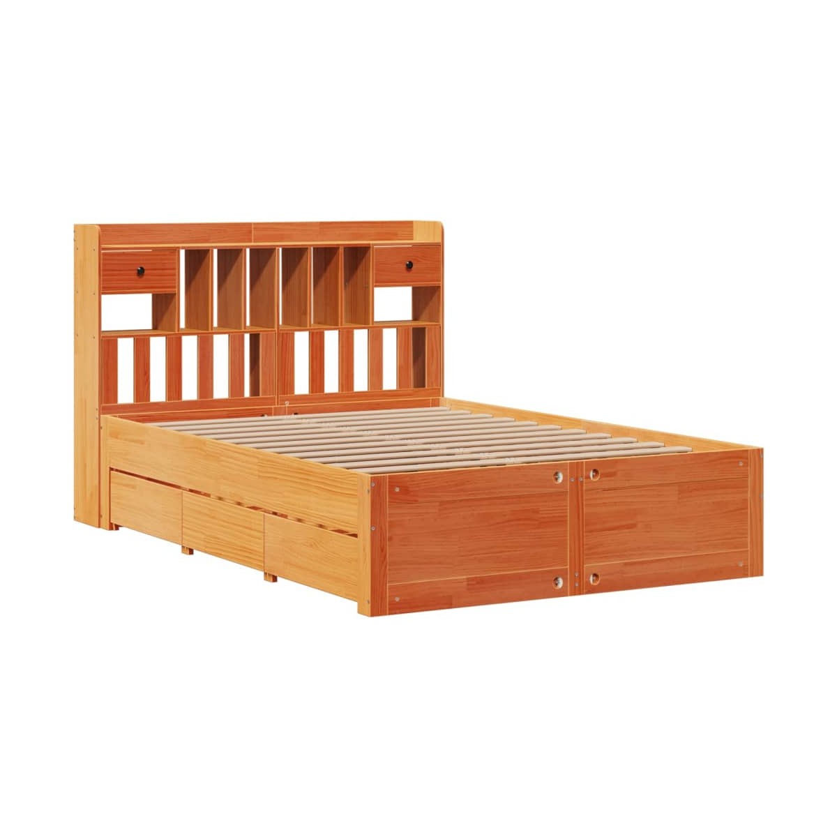 ¡Consigue una mejor noche de sueño reparador con esta cama con estantería! Es un aporte acogedor para cualquier dormitorio. Estructura estable y duradera: La madera de pino maciza es conocida por su resistencia y durabilidad. Sus vetas rectas y sus característicos nudos contribuyen a su encanto rústico.Somier de láminas para un soporte óptimo: La estructura de cama está equipada con un somier de láminas para el apoyo y la transpirabilidad del colchón.Amplio espacio de almacenamiento: El cabecero de estantería ofrece un amplio espacio de almacenamiento para mantener libros, artículos decorativos o pertenencias personales al alcance de la mano, lo que reduce el desorden en el dormitorio.Ahorro de espacio: Este cabecero es una opción de ahorro de espacio que puede sustituir la necesidad de una mesilla de noche, ayudando a maximizar el espacio de tu dormitorio, y haciéndolo ideal para espacios pequeños o limitados.Maniobrabilidad sin esfuerzo: Este cajón de almacenamiento bajo la cama cuenta con cuatro ruedas, que proporcionan una maniobrabilidad suave y sin esfuerzo para deslizarse dentro y fuera de debajo de tu cama. Información útil:El colchón no está incluido con la cama. Disponemos de una variada selección de colchones. Puedes echar un vistazo a nuestra tienda para buscar el colchón correspondiente.