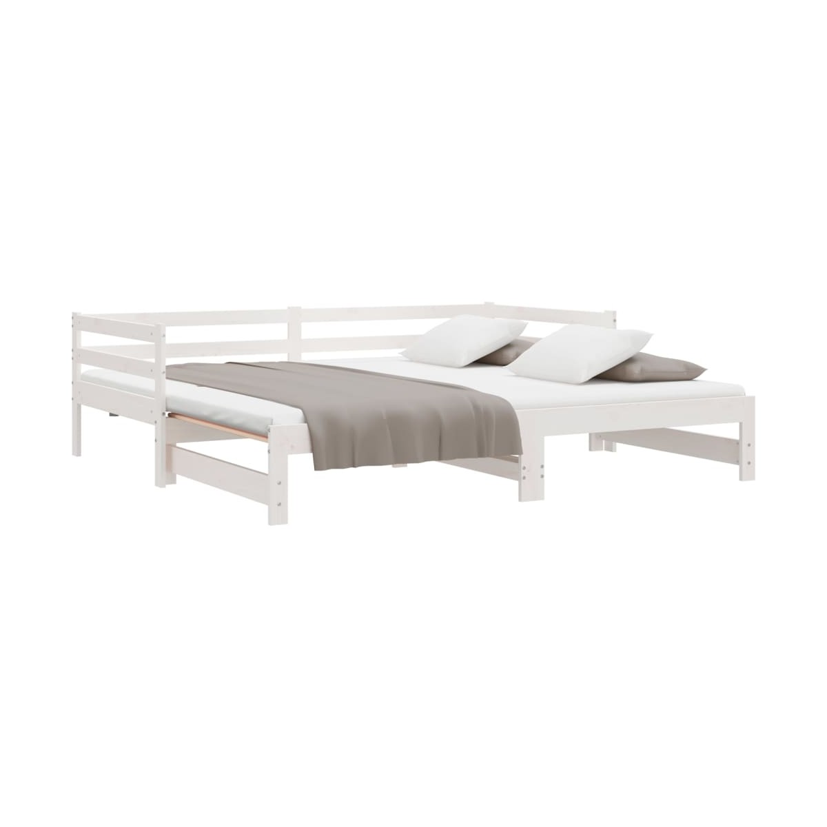 Este sofá cama 2 en 1 con cama nido, que sirve como sofá y cama, es un complemento práctico y llamativo para tu salón o dormitorio. Estructura estable y duradera: La madera de pino maciza es conocida por su resistencia y durabilidad. Sus vetas rectas y sus característicos nudos contribuyen a su encanto rústico.Listones para un soporte óptimo: El somier se completa con listones para ofrecer un soporte esencial y transpirabilidad a tu colchón.Sofá cama versátil: El sofá cama funciona como sofá durante el día y se convierte fácilmente en una cama doble por la noche sacando la cama nido, lo que proporciona una solución práctica para recibir invitados y maximizar el espacio.Espacio de almacenamiento adicional: Para mayor comodidad, la cama dispone de un espacio debajo para guardar tus cajas de almacenaje y que no se vean. Información útil:El colchón no está incluido con la cama. Disponemos de una variada selección de colchones. Puedes echar un vistazo a nuestra tienda para buscar el colchón correspondiente.