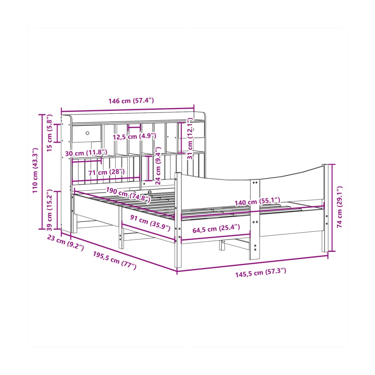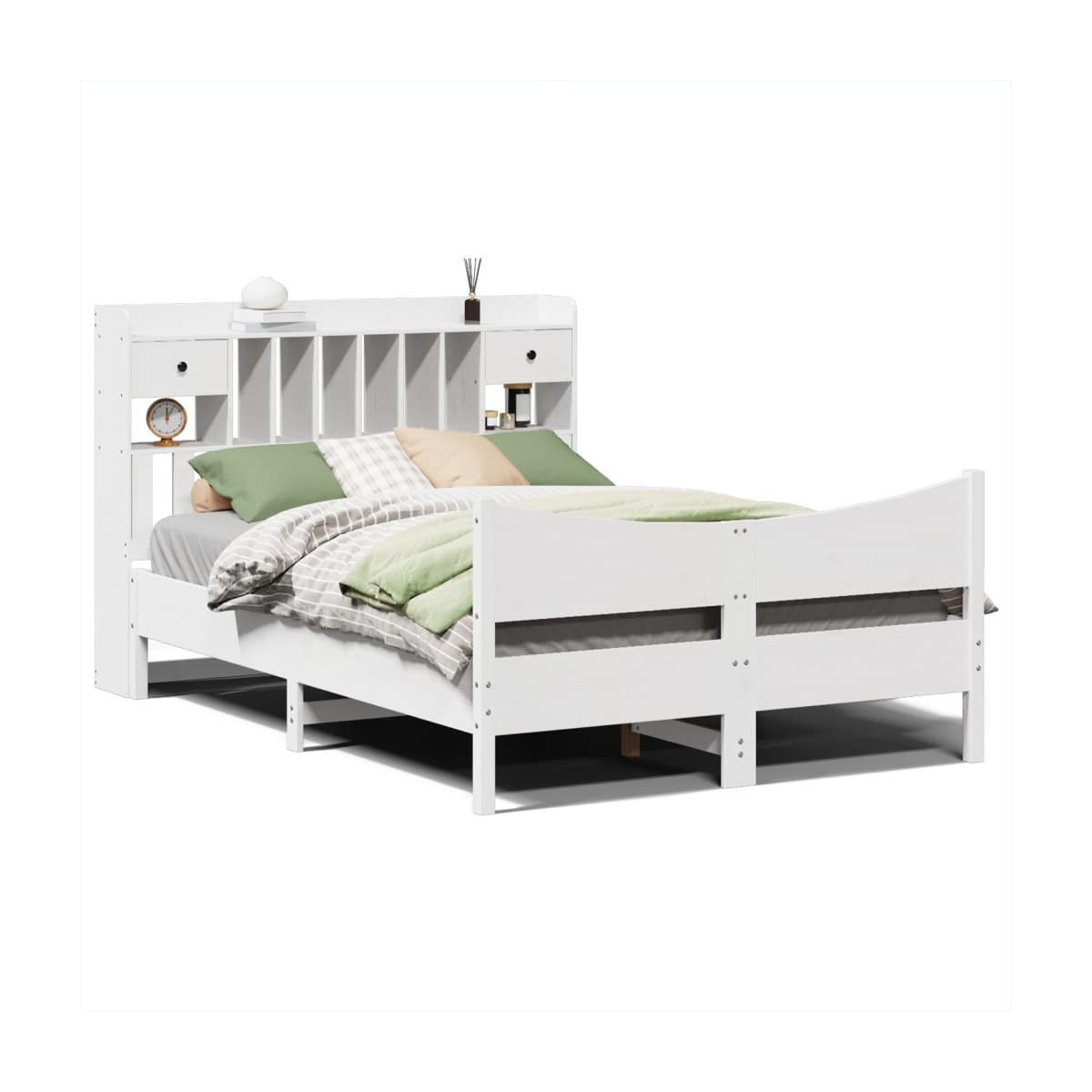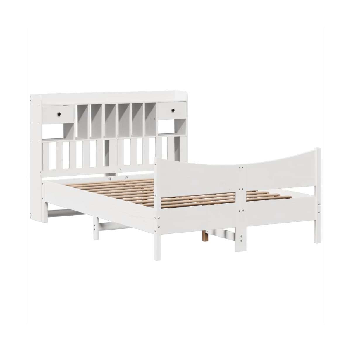 Consigue un sueño más reparador con esta estructura de cama. Es un aporte acogedor para cualquier dormitorio. Estructura estable y duradera: La madera de pino maciza es conocida por su resistencia y durabilidad. Sus vetas rectas y sus característicos nudos contribuyen a su encanto rústico.Somier de láminas para un soporte óptimo: El base de cama está equipado con un somier de láminas para el apoyo y la transpirabilidad del colchón.Espacio de almacenamiento extra: Este elegante cabecero cuenta con 6 prácticos compartimentos y 2 cajones, lo que ofrece un amplio espacio de almacenamiento para mantener todos los elementos esenciales de la noche al alcance de la mano. Para mayor comodidad, la cama de madera tiene un espacio adicional debajo para mantener tus cajas de almacenamiento fuera de la vista.Patas estables y duraderas: Este somier está sostenido por patas resistentes, lo que garantiza estabilidad, seguridad y firmeza.Cabecero y estribo de cama funcionales: El cabecero y el estribo de cama mantienen el colchón en su lugar. Además, la cabecera te brinda un excelente soporte para la espalda mientras estás sentado leyendo o mirando la televisión. Información útil:El colchón no está incluido con la cama. Disponemos de una variada selección de colchones. Puedes echar un vistazo a nuestra tienda para buscar el colchón correspondiente.