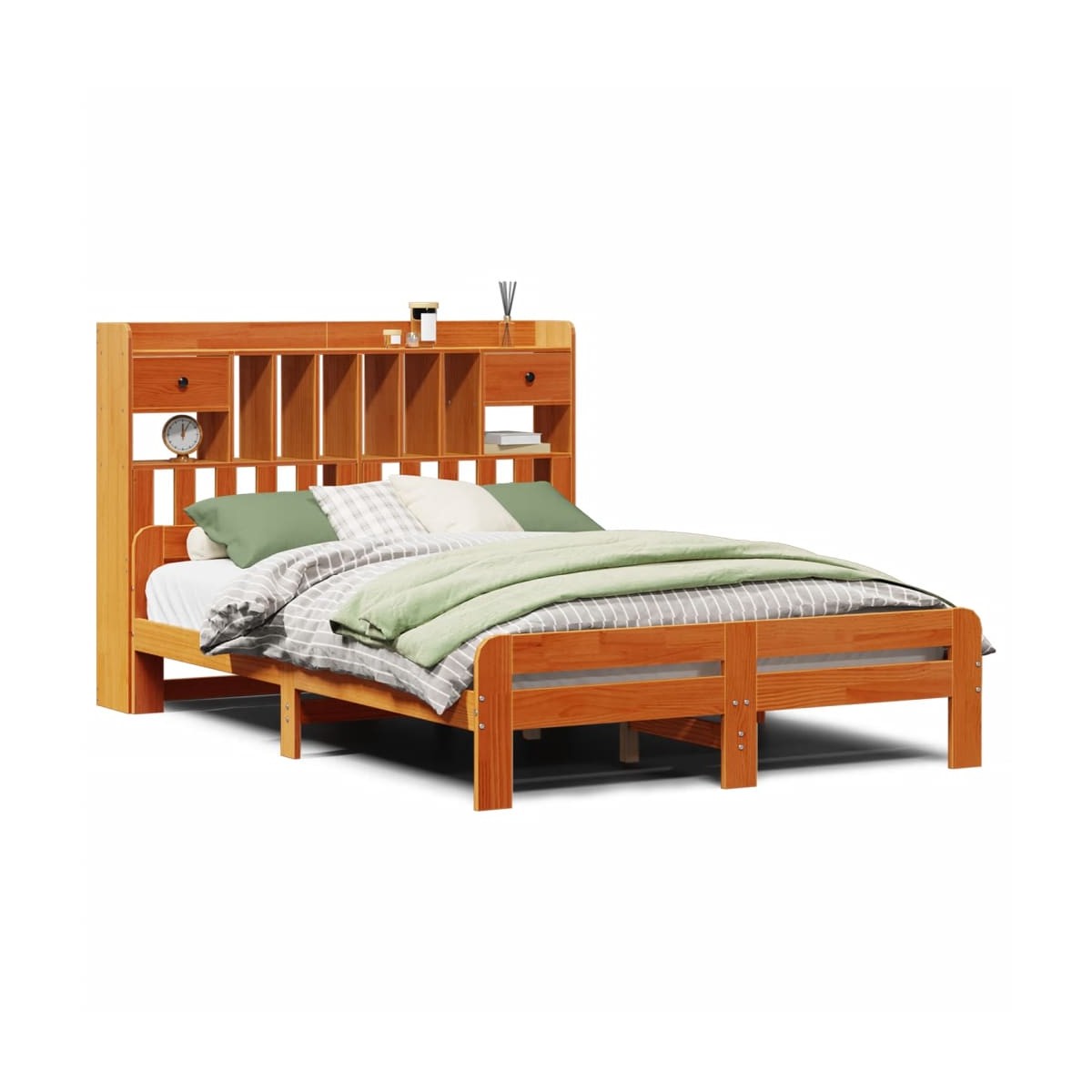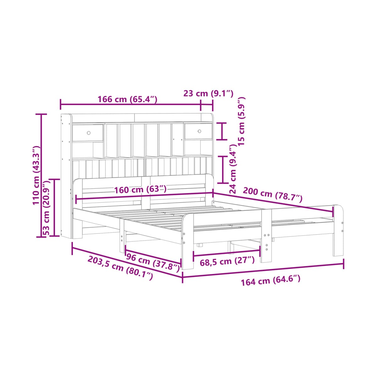 ¡Consigue una mejor noche de sueño reparador con esta cama con estantería! Es un aporte acogedor para cualquier dormitorio. Estructura estable y duradera: La madera de pino maciza es conocida por su resistencia y durabilidad. Sus vetas rectas y sus característicos nudos contribuyen a su encanto rústico.Somier de láminas para un soporte óptimo: La estructura de cama está equipada con un somier de láminas para el apoyo y la transpirabilidad del colchón.Amplio espacio de almacenamiento: El cabecero de estantería ofrece un amplio espacio de almacenamiento para mantener libros, artículos decorativos o pertenencias personales al alcance de la mano, lo que reduce el desorden en el dormitorio.Práctico pie de cama: El pie de cama no solo contribuye a la estabilidad general del marco de la cama, proporcionando un entorno seguro para dormir, sino que también asegura su colchón en su lugar y evita que las mantas, sábanas y otra ropa de cama se caigan del extremo de la cama, manteniendo una apariencia ordenada.Ahorro de espacio: Este cabecero es una opción de ahorro de espacio que puede sustituir la necesidad de una mesilla de noche, ayudando a maximizar el espacio de tu dormitorio, y haciéndolo ideal para espacios pequeños o limitados. Información útil:El colchón no está incluido con la cama. Disponemos de una variada selección de colchones. Puedes echar un vistazo a nuestra tienda para buscar el colchón correspondiente.