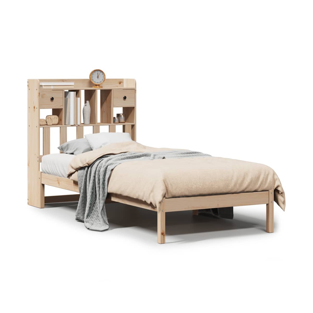 ¡Consigue una mejor noche de sueño reparador con esta cama con estantería! Es un aporte acogedor para cualquier dormitorio. Estructura estable y duradera: La madera de pino maciza es conocida por su resistencia y durabilidad. Sus vetas rectas y sus característicos nudos contribuyen a su encanto rústico.Somier de láminas para un soporte óptimo: La estructura de cama está equipada con un somier de láminas para el apoyo y la transpirabilidad del colchón.Amplio espacio de almacenamiento: El cabecero de estantería ofrece un amplio espacio de almacenamiento para mantener libros, artículos decorativos o pertenencias personales al alcance de la mano, lo que reduce el desorden en el dormitorio.Ahorro de espacio: Este cabecero es una opción de ahorro de espacio que puede sustituir la necesidad de una mesilla de noche, ayudando a maximizar el espacio de tu dormitorio, y haciéndolo ideal para espacios pequeños o limitados. Información útil:El colchón no está incluido con la cama. Disponemos de una variada selección de colchones. Puedes echar un vistazo a nuestra tienda para buscar el colchón correspondiente.