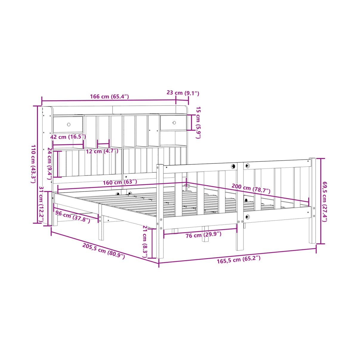 ¡Consigue una mejor noche de sueño reparador con esta cama con estantería! Es un aporte acogedor para cualquier dormitorio. Estructura estable y duradera: La madera de pino maciza es conocida por su resistencia y durabilidad. Sus vetas rectas y sus característicos nudos contribuyen a su encanto rústico.Somier de láminas para un soporte óptimo: La estructura de cama está equipada con un somier de láminas para el apoyo y la transpirabilidad del colchón.Amplio espacio de almacenamiento: El cabecero de estantería ofrece un amplio espacio de almacenamiento para mantener libros, artículos decorativos o pertenencias personales al alcance de la mano, lo que reduce el desorden en el dormitorio.Práctico pie de cama: El pie de cama no solo contribuye a la estabilidad general del marco de la cama, proporcionando un entorno seguro para dormir, sino que también asegura su colchón en su lugar y evita que las mantas, sábanas y otra ropa de cama se caigan del extremo de la cama, manteniendo una apariencia ordenada.Ahorro de espacio: Este cabecero es una opción de ahorro de espacio que puede sustituir la necesidad de una mesilla de noche, ayudando a maximizar el espacio de tu dormitorio, y haciéndolo ideal para espacios pequeños o limitados. Información útil:El colchón no está incluido con la cama. Disponemos de una variada selección de colchones. Puedes echar un vistazo a nuestra tienda para buscar el colchón correspondiente.