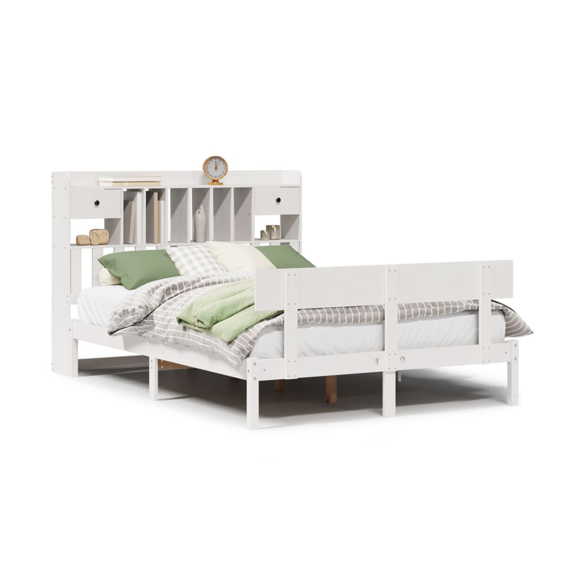 ¡Consigue una mejor noche de sueño reparador con esta cama con estantería! Es un aporte acogedor para cualquier dormitorio. Estructura estable y duradera: La madera de pino maciza es conocida por su resistencia y durabilidad. Sus vetas rectas y sus característicos nudos contribuyen a su encanto rústico.Somier de láminas para un soporte óptimo: La estructura de cama está equipada con un somier de láminas para el apoyo y la transpirabilidad del colchón.Amplio espacio de almacenamiento: El cabecero de estantería ofrece un amplio espacio de almacenamiento para mantener libros, artículos decorativos o pertenencias personales al alcance de la mano, lo que reduce el desorden en el dormitorio.Práctico pie de cama: El pie de cama no solo contribuye a la estabilidad general del marco de la cama, proporcionando un entorno seguro para dormir, sino que también asegura su colchón en su lugar y evita que las mantas, sábanas y otra ropa de cama se caigan del extremo de la cama, manteniendo una apariencia ordenada.Ahorro de espacio: Este cabecero es una opción de ahorro de espacio que puede sustituir la necesidad de una mesilla de noche, ayudando a maximizar el espacio de tu dormitorio, y haciéndolo ideal para espacios pequeños o limitados. Información útil:El colchón no está incluido con la cama. Disponemos de una variada selección de colchones. Puedes echar un vistazo a nuestra tienda para buscar el colchón correspondiente.