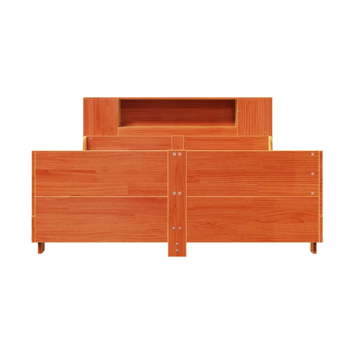 Consigue un sueño más reparador con esta estructura de cama. Es un aporte acogedor para cualquier dormitorio. Estructura estable y duradera: La madera de pino maciza es conocida por su resistencia y durabilidad. Sus vetas rectas y sus característicos nudos contribuyen a su encanto rústico.Aprovecha al máximo el espacio: Con 7 prácticos compartimentos, este cabecero es una opción que ahorra espacio y puede sustituir la necesidad de una mesita de noche, ayudando a maximizar el espacio de tu dormitorio y haciéndolo ideal para espacios pequeños o limitados.Cabecero y estribo de cama funcionales: El cabecero y el estribo de cama mantienen el colchón en su lugar. Además, la cabecera te brinda un excelente soporte para la espalda mientras estás sentado leyendo o mirando la televisión.Somier de láminas para un soporte óptimo: La estructura de cama está equipada con un somier de láminas para el apoyo y la transpirabilidad del colchón. Información útil:El colchón no está incluido con la cama. Disponemos de una variada selección de colchones. Puedes echar un vistazo a nuestra tienda para buscar el colchón correspondiente.