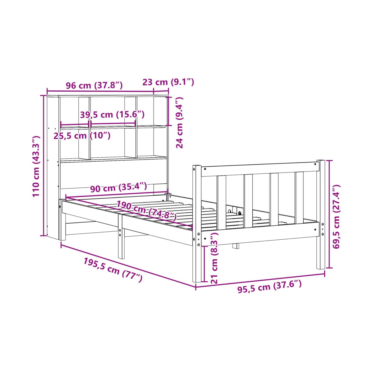 ¡Consigue una mejor noche de sueño reparador con esta cama con estantería! Es un aporte acogedor para cualquier dormitorio. Estructura estable y duradera: La madera de pino maciza es conocida por su resistencia y durabilidad. Sus vetas rectas y sus característicos nudos contribuyen a su encanto rústico.Somier de láminas para un soporte óptimo: La estructura de cama está equipada con un somier de láminas para el apoyo y la transpirabilidad del colchón.Amplio espacio de almacenamiento: El cabecero de estantería ofrece un amplio espacio de almacenamiento para mantener libros, artículos decorativos o pertenencias personales al alcance de la mano, lo que reduce el desorden en el dormitorio.Práctico pie de cama: El pie de cama no solo contribuye a la estabilidad general del marco de la cama, proporcionando un entorno seguro para dormir, sino que también asegura su colchón en su lugar y evita que las mantas, sábanas y otra ropa de cama se caigan del extremo de la cama, manteniendo una apariencia ordenada.Ahorro de espacio: Este cabecero es una opción de ahorro de espacio que puede sustituir la necesidad de una mesilla de noche, ayudando a maximizar el espacio de tu dormitorio, y haciéndolo ideal para espacios pequeños o limitados. Información útil:El colchón no está incluido con la cama. Disponemos de una variada selección de colchones. Puedes echar un vistazo a nuestra tienda para buscar el colchón correspondiente.