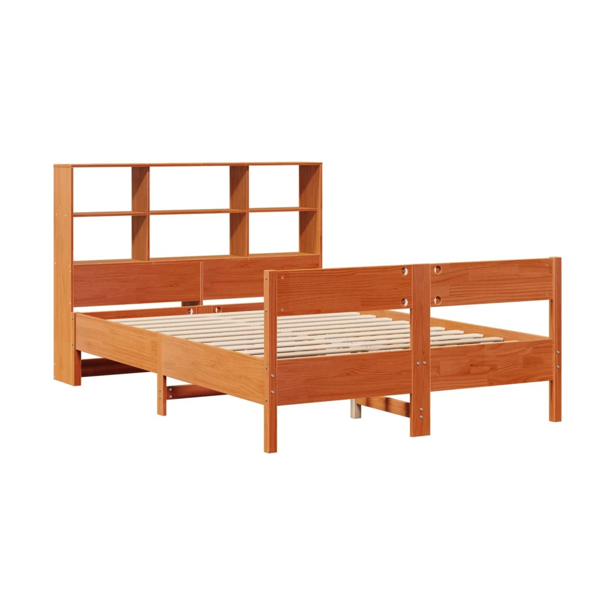 ¡Consigue una mejor noche de sueño reparador con esta cama con estantería! Es un aporte acogedor para cualquier dormitorio. Estructura estable y duradera: La madera de pino maciza es conocida por su resistencia y durabilidad. Sus vetas rectas y sus característicos nudos contribuyen a su encanto rústico. Somier de láminas para un soporte óptimo: La estructura de cama está equipada con un somier de láminas para el apoyo y la transpirabilidad del colchón. Amplio espacio de almacenamiento: El cabecero de estantería ofrece un amplio espacio de almacenamiento para mantener libros, artículos decorativos o pertenencias personales al alcance de la mano, lo que reduce el desorden en el dormitorio. Práctico pie de cama: El pie de cama no solo contribuye a la estabilidad general del marco de la cama, proporcionando un entorno seguro para dormir, sino que también asegura su colchón en su lugar y evita que las mantas, sábanas y otra ropa de cama se caigan del extremo de la cama, manteniendo una apariencia ordenada. Ahorro de espacio: Este cabecero es una opción de ahorro de espacio que puede sustituir la necesidad de una mesilla de noche, ayudando a maximizar el espacio de tu dormitorio, y haciéndolo ideal para espacios pequeños o limitados. Información útil:El colchón no está incluido con la cama. Disponemos de una variada selección de colchones. Puedes echar un vistazo a nuestra tienda para buscar el colchón correspondiente.