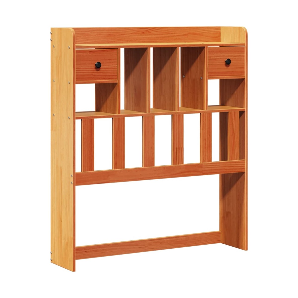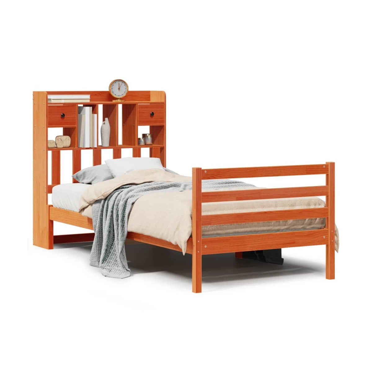 ¡Consigue una mejor noche de sueño reparador con esta cama con estantería! Es un aporte acogedor para cualquier dormitorio. Estructura estable y duradera: La madera de pino maciza es conocida por su resistencia y durabilidad. Sus vetas rectas y sus característicos nudos contribuyen a su encanto rústico.Somier de láminas para un soporte óptimo: La estructura de cama está equipada con un somier de láminas para el apoyo y la transpirabilidad del colchón.Amplio espacio de almacenamiento: El cabecero de estantería ofrece un amplio espacio de almacenamiento para mantener libros, artículos decorativos o pertenencias personales al alcance de la mano, lo que reduce el desorden en el dormitorio.Práctico pie de cama: El pie de cama no solo contribuye a la estabilidad general del marco de la cama, proporcionando un entorno seguro para dormir, sino que también asegura su colchón en su lugar y evita que las mantas, sábanas y otra ropa de cama se caigan del extremo de la cama, manteniendo una apariencia ordenada.Ahorro de espacio: Este cabecero es una opción de ahorro de espacio que puede sustituir la necesidad de una mesilla de noche, ayudando a maximizar el espacio de tu dormitorio, y haciéndolo ideal para espacios pequeños o limitados. Información útil:El colchón no está incluido con la cama. Disponemos de una variada selección de colchones. Puedes echar un vistazo a nuestra tienda para buscar el colchón correspondiente.