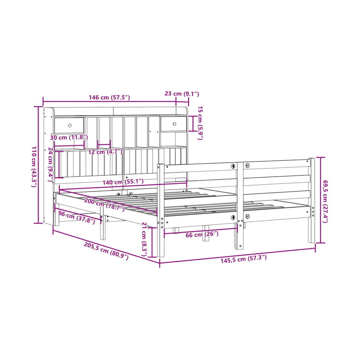 ¡Consigue una mejor noche de sueño reparador con esta cama con estantería! Es un aporte acogedor para cualquier dormitorio. Estructura estable y duradera: La madera de pino maciza es conocida por su resistencia y durabilidad. Sus vetas rectas y sus característicos nudos contribuyen a su encanto rústico.Somier de láminas para un soporte óptimo: La estructura de cama está equipada con un somier de láminas para el apoyo y la transpirabilidad del colchón.Amplio espacio de almacenamiento: El cabecero de estantería ofrece un amplio espacio de almacenamiento para mantener libros, artículos decorativos o pertenencias personales al alcance de la mano, lo que reduce el desorden en el dormitorio.Práctico pie de cama: El pie de cama no solo contribuye a la estabilidad general del marco de la cama, proporcionando un entorno seguro para dormir, sino que también asegura su colchón en su lugar y evita que las mantas, sábanas y otra ropa de cama se caigan del extremo de la cama, manteniendo una apariencia ordenada.Ahorro de espacio: Este cabecero es una opción de ahorro de espacio que puede sustituir la necesidad de una mesilla de noche, ayudando a maximizar el espacio de tu dormitorio, y haciéndolo ideal para espacios pequeños o limitados. Información útil:El colchón no está incluido con la cama. Disponemos de una variada selección de colchones. Puedes echar un vistazo a nuestra tienda para buscar el colchón correspondiente.