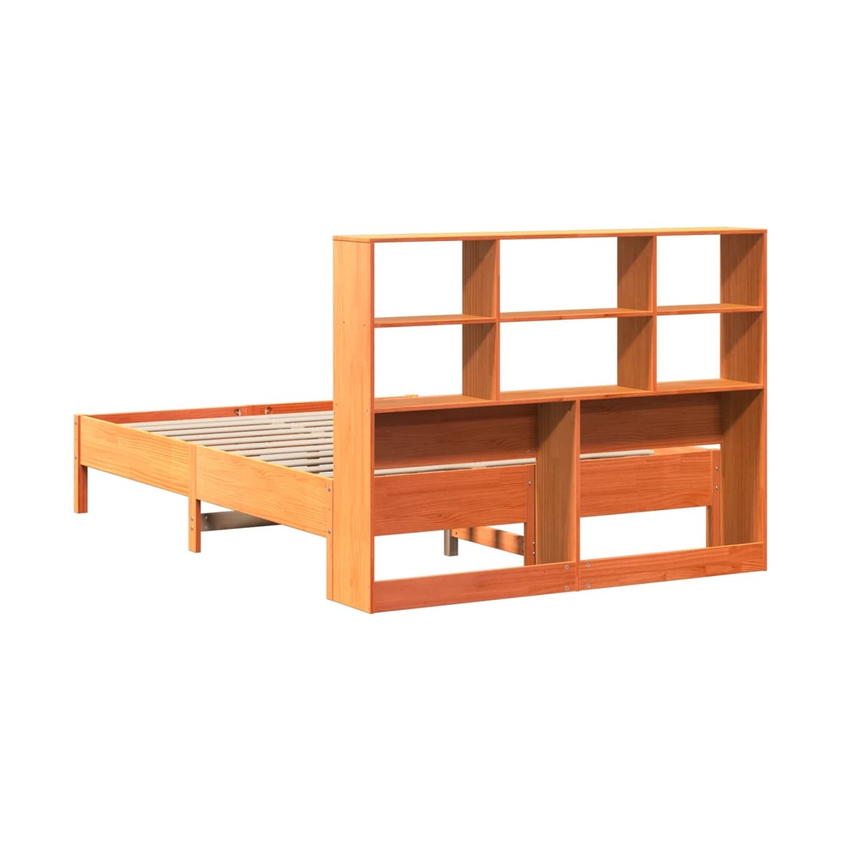 ¡Consigue una mejor noche de sueño reparador con esta cama con estantería! Es un aporte acogedor para cualquier dormitorio. Estructura estable y duradera: La madera de pino maciza es conocida por su resistencia y durabilidad. Sus vetas rectas y sus característicos nudos contribuyen a su encanto rústico. Somier de láminas para un soporte óptimo: La estructura de cama está equipada con un somier de láminas para el apoyo y la transpirabilidad del colchón. Amplio espacio de almacenamiento: El cabecero de estantería ofrece un amplio espacio de almacenamiento para mantener libros, artículos decorativos o pertenencias personales al alcance de la mano, lo que reduce el desorden en el dormitorio. Ahorro de espacio: Este cabecero es una opción de ahorro de espacio que puede sustituir la necesidad de una mesilla de noche, ayudando a maximizar el espacio de tu dormitorio, y haciéndolo ideal para espacios pequeños o limitados. Información útil:El colchón no está incluido con la cama. Disponemos de una variada selección de colchones. Puedes echar un vistazo a nuestra tienda para buscar el colchón correspondiente.
