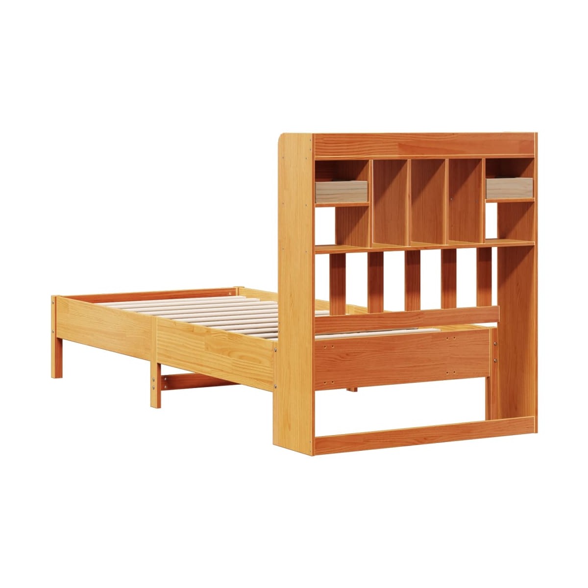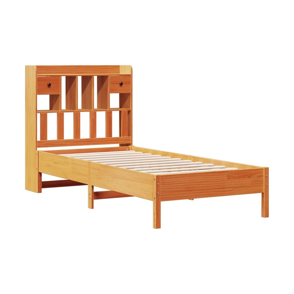 ¡Consigue una mejor noche de sueño reparador con esta cama con estantería! Es un aporte acogedor para cualquier dormitorio. Estructura estable y duradera: La madera de pino maciza es conocida por su resistencia y durabilidad. Sus vetas rectas y sus característicos nudos contribuyen a su encanto rústico.Somier de láminas para un soporte óptimo: La estructura de cama está equipada con un somier de láminas para el apoyo y la transpirabilidad del colchón.Amplio espacio de almacenamiento: El cabecero de estantería ofrece un amplio espacio de almacenamiento para mantener libros, artículos decorativos o pertenencias personales al alcance de la mano, lo que reduce el desorden en el dormitorio.Ahorro de espacio: Este cabecero es una opción de ahorro de espacio que puede sustituir la necesidad de una mesilla de noche, ayudando a maximizar el espacio de tu dormitorio, y haciéndolo ideal para espacios pequeños o limitados. Información útil:El colchón no está incluido con la cama. Disponemos de una variada selección de colchones. Puedes echar un vistazo a nuestra tienda para buscar el colchón correspondiente.