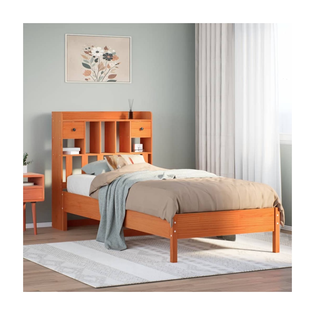 ¡Consigue una mejor noche de sueño reparador con esta cama con estantería! Es un aporte acogedor para cualquier dormitorio. Estructura estable y duradera: La madera de pino maciza es conocida por su resistencia y durabilidad. Sus vetas rectas y sus característicos nudos contribuyen a su encanto rústico.Somier de láminas para un soporte óptimo: La estructura de cama está equipada con un somier de láminas para el apoyo y la transpirabilidad del colchón.Amplio espacio de almacenamiento: El cabecero de estantería ofrece un amplio espacio de almacenamiento para mantener libros, artículos decorativos o pertenencias personales al alcance de la mano, lo que reduce el desorden en el dormitorio.Ahorro de espacio: Este cabecero es una opción de ahorro de espacio que puede sustituir la necesidad de una mesilla de noche, ayudando a maximizar el espacio de tu dormitorio, y haciéndolo ideal para espacios pequeños o limitados. Información útil:El colchón no está incluido con la cama. Disponemos de una variada selección de colchones. Puedes echar un vistazo a nuestra tienda para buscar el colchón correspondiente.