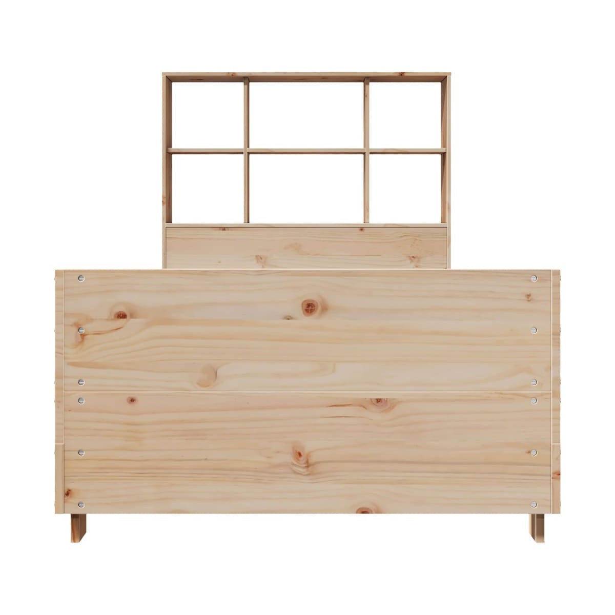 Consigue un sueño más reparador con esta estructura de cama. Es un aporte acogedor para cualquier dormitorio. Estructura estable y duradera: La madera de pino maciza es conocida por su resistencia y durabilidad. Sus vetas rectas y sus característicos nudos contribuyen a su encanto rústico.Aprovecha al máximo el espacio: Con 6 prácticos compartimentos, este cabecero es una opción que ahorra espacio y puede sustituir la necesidad de una mesita de noche, ayudando a maximizar el espacio de tu dormitorio y haciéndolo ideal para espacios pequeños o limitados.Cabecero versátil: Esta estructura de cama viene con un cabecero que proporciona un excelente soporte para la espalda cuando te sientas en la cama para leer o ver la televisión, a la vez que sirve como elemento decorativo.Somier de láminas para un soporte óptimo: La estructura de cama está equipada con un somier de láminas para el apoyo y la transpirabilidad del colchón. Información útil:El colchón no está incluido con la cama. Disponemos de una variada selección de colchones. Puedes echar un vistazo a nuestra tienda para buscar el colchón correspondiente.